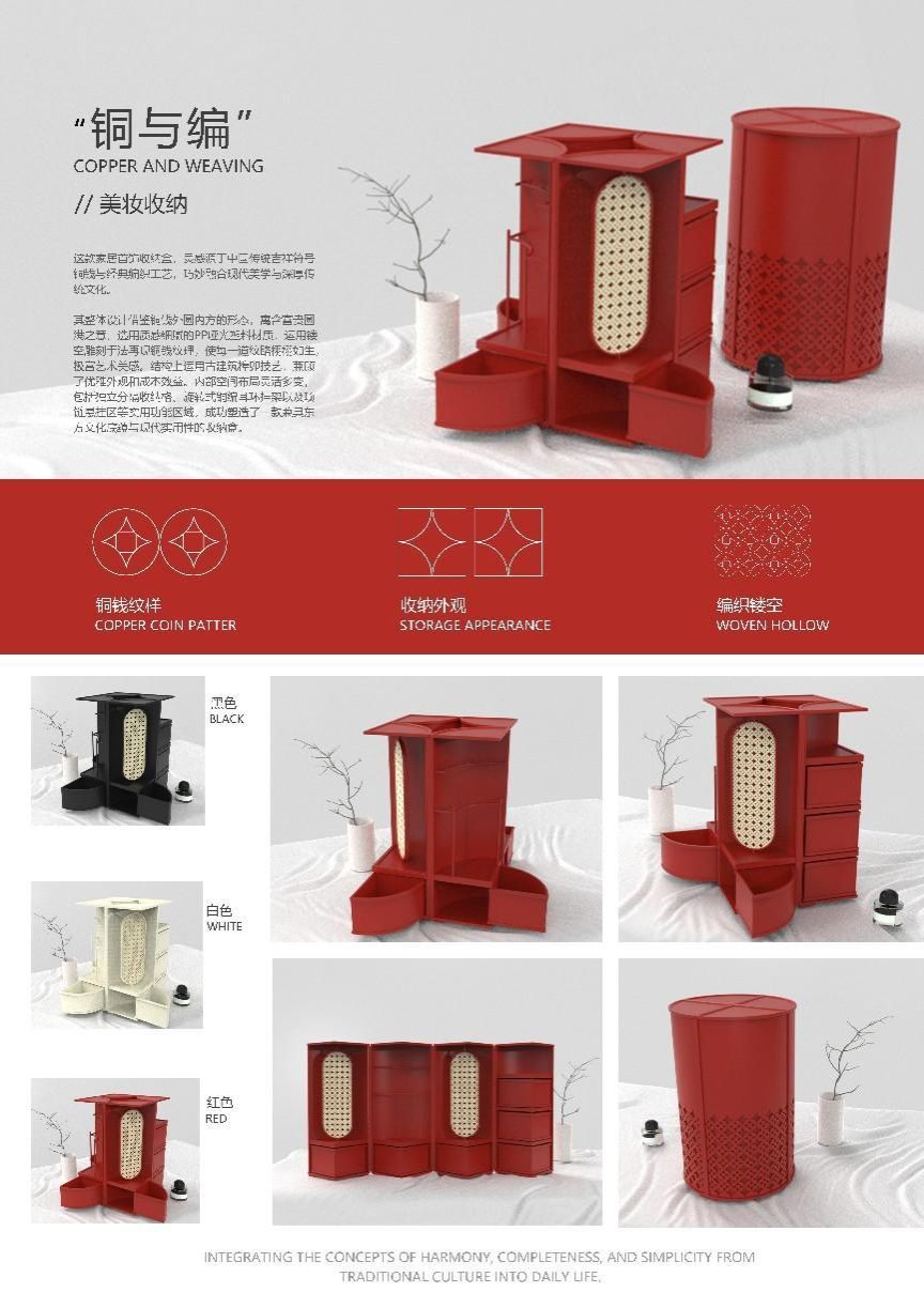 刘瑶、李元琴、王小蓉团队的作品“铜与编”以其独特的设计理念和精湛的工艺水平在众多参赛作品中脱颖而出。该作品在需求研究、概念方向、功能应用、创新因素、环保安全以及可实现性等方面均得到了评审委员会的高度认可。作品不仅体现了对美好生活的深刻理解,更展现了新时代工业设计的创新理念,赢得了评委和观展受众的一致好评。