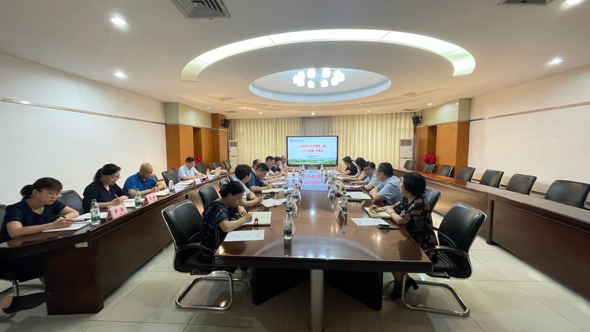 7月8日上午,学校内部审计工作领导小组在厚德楼3018会议室召开2024年第2次会议。工作领导小组组长曾维伦、温涛,副组长宋豫、柏群、张海燕,各成员单位负责人及审计处人员参加了会议,会议由校长温涛主持。