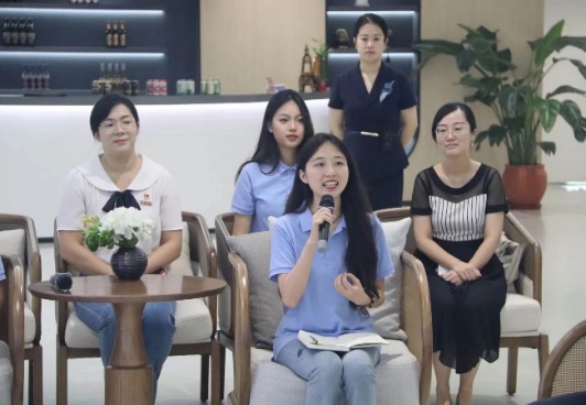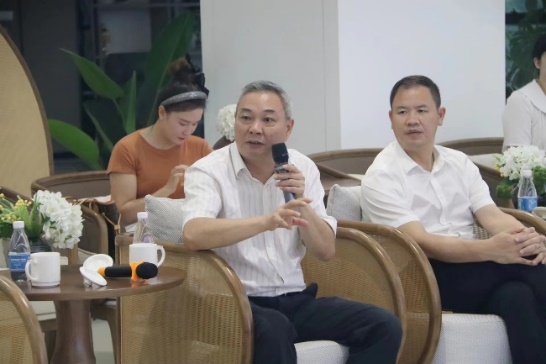 李国军与校友文德纲亲切交谈,了解关心他的生活工作情况,并和文德纲一起与实践团师生进行座谈交流。实践团成员们逐一汇报了在白溪开展直播助农、产品设计、政策宣讲的情况,分享了收获和体会。李国军对白溪社区提供的实践机会表达感谢,对同学们的实践情况给与充分的肯定,勉励同学们要珍惜到乡村实地实践的机会,发扬自找苦吃、吃苦耐劳的精神,在实践中练就本领,磨砺中增长才干。校友文德纲对李国军校长一行来到白溪社区表示感谢,也希望未来与母校保持长期合作,实现资源共享、优势互补,助力支坪白溪的产业转型,乡村发展。