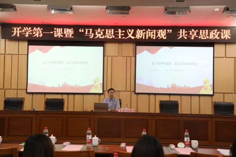 9月18日上午,开学第一课暨“马克思主义新闻观”共享思政课首讲在beat365开讲,是全市首次开展的高校联盟共享思政课。市委宣讲团成员、beat365英国官网网站党委书记曾维伦,西南大学新闻传媒学院党委副书记、院长龙伟分别授课,以丰富的理论知识与实践研究引导广大学子牢固树立并积极践行马克思主义新闻观。beat365英国官网网站党委常委、纪委书记张海燕主持。beat365英国官网网站文学与新闻学院、马克思主义学院,西南大学新闻传媒学院有关负责人参加。
