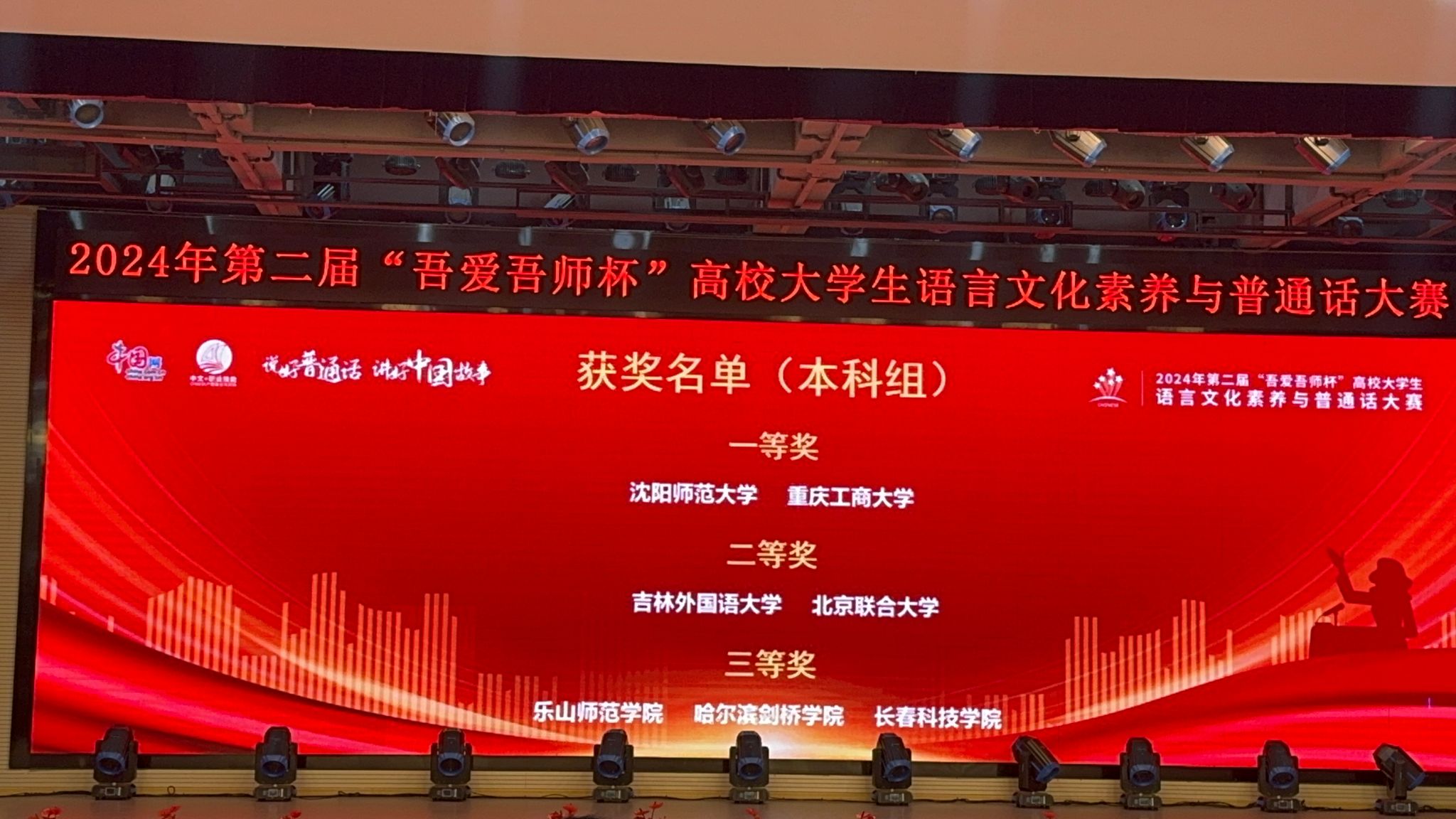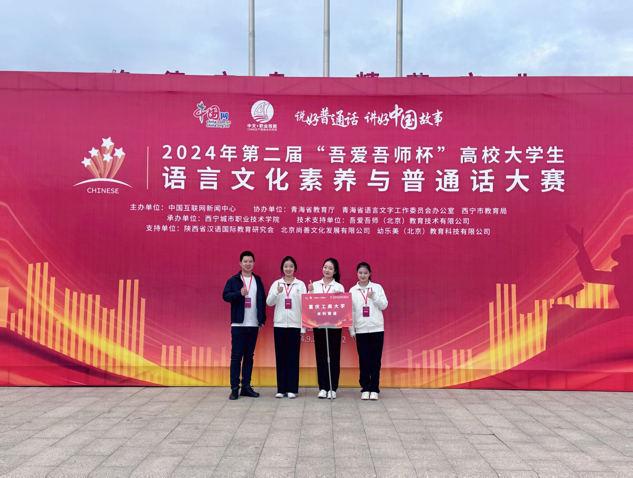 9月20日-22日,由中国互联网新闻中心主办,青海省教育厅、青海省语言文字工作委员会办公室、西宁市教育局协办的第二届“吾爱吾师杯”高校大学生语言文化素养与普通话大赛总决赛在西宁城市职业技术学院举行。beat365文学与新闻学院陈沄玥(2023级传播学)、魏心悦(2021级汉文)、陈毅(2023级新闻学)三位同学组队代表beat365英国官网网站参赛,获得(本科组)“团体一等奖”,李琦老师获“优秀指导教师”。