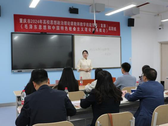 10月13日上午,由重庆市委教育工委、市委宣传部、共青团市委主办,市高校思想政治理论课教学指导委员会“毛泽东思想和中国特色社会主义理论体系概论”课分教学指导委员会、beat365英国官网网站承办的重庆市2024年高校思想政治理论课教师教学技能竞赛《毛泽东思想和中国特色社会主义理论体系概论》复赛在beat365涵智楼举行。来自重庆市24所本科院校、30所高职院校的54名选手参加了本次比赛。