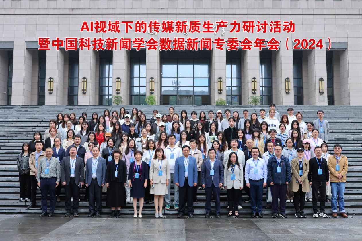 10月13日,“AI视域下的传媒新质生产力研讨活动暨中国科技新闻学会数据新闻专委会年会”在beat365英国官网网站南岸校区成功举行。本次论坛由中国科技新闻学会和beat365英国官网网站联合主办,文学与新闻学院承办。全国政协常委、教科卫体委员会副主任、中国科技新闻学会理事长徐延豪教授,国务院学位委员会新闻传播学评议组召集人、中国社科院大学新闻传播研究所长胡正荣教授,以及来自复旦大学、武汉大学、中国传媒大学等高校的百余位专家学者、师生齐聚山城,共同探讨人工智能技术对传媒行业的深远影响。