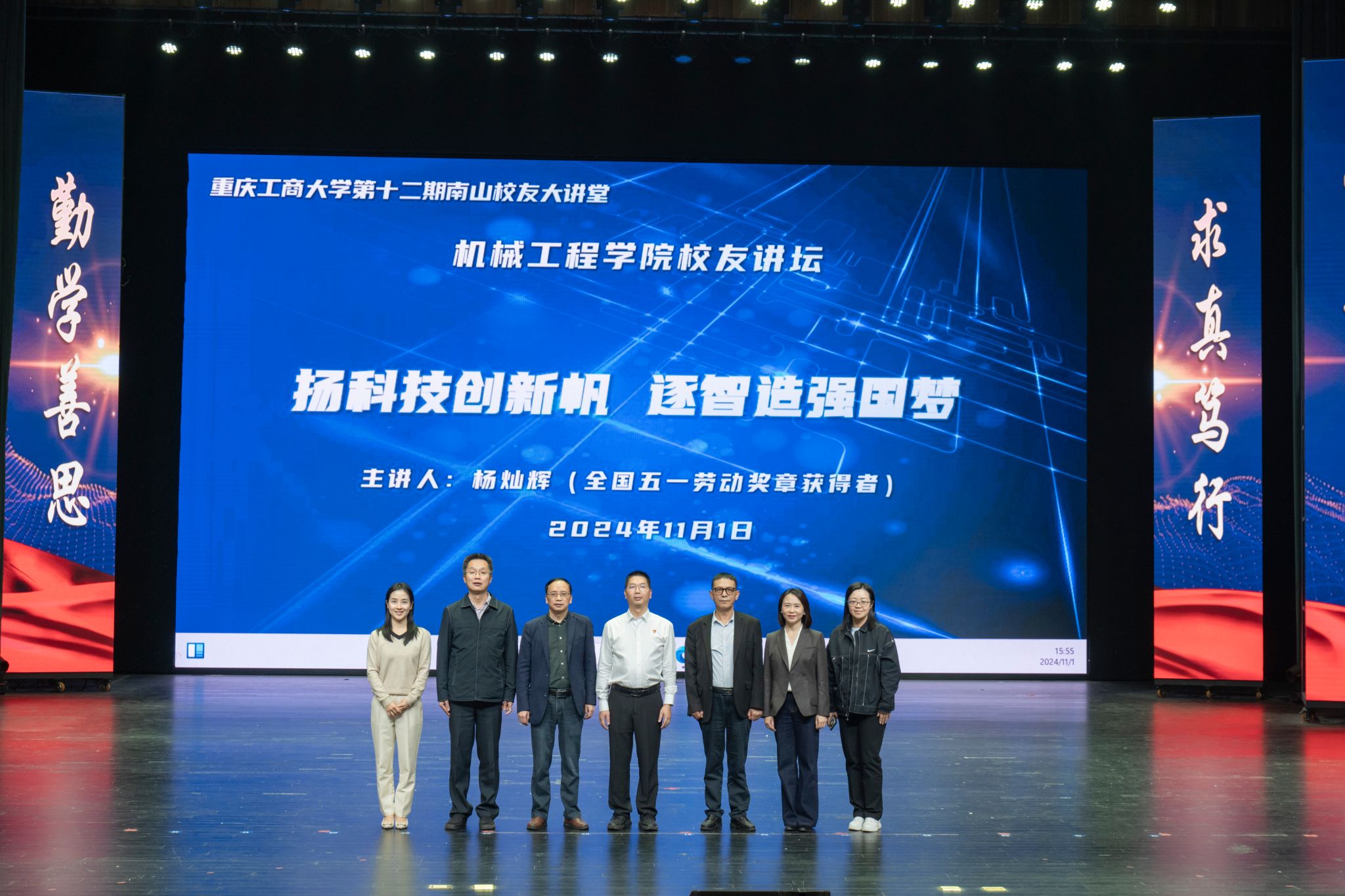 11月1日下午,机械工程学院开展校友讲坛,邀请2024年全国五一劳动奖章获得者杨灿辉校友在学校剧场做“扬科技创新帆 逐制造强国梦”主题分享。国内合作发展处(校友工作办公室)王建明、杨灿辉校友当年的辅导员尹建平,学院班子成员及学院2024年新同学近800人参加了活动。活动由学院党委书记杨娟主持。