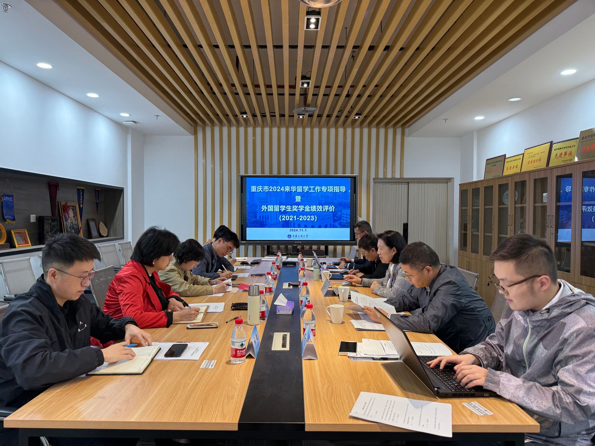 11月1日,重庆市教育委员会来华留学专项指导工作专家组来校开展2024年来华留学专项指导,同时对beat3652021-2023年外国留学生奖学金绩效进行综合评价。副校长柏群,留学生院院长张轶、副院长刘茜、学院相关工作人员参加会议。