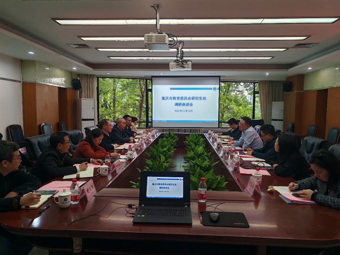 11月14日,重庆市教育委员会学位管理与研究生教育处张永祥一行到校调研beat365学科建设与研究生教育工作,调研座谈会在厚德楼3020会议室举行。学校党委常委、副校长张波出席座谈并主持会议,学校发展规划处、研究生院、人事处、科研处、财务处、教务处等职能部门、部分学院及科研平台负责人参加了座谈。