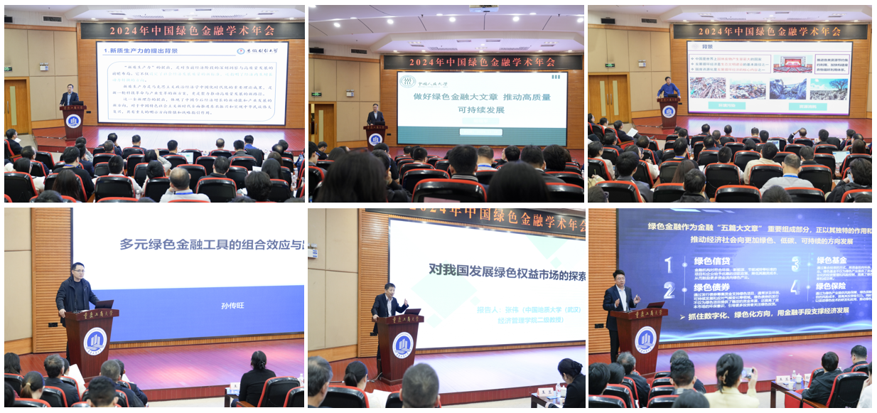 安徽财经大学党委常委、副校长宋马林教授以《中国新质生产力发展指数分析与评价》为题,中国人民大学财政金融学院原副院长、中国金融专业学位研究生教育指导委员会秘书长赵锡军教授以《做好绿色金融大文章推动高质量发展》为题,南开大学徐鹤教授以《中国再生资源回收利用行业碳交易探究》为题,厦门大学孙传旺教授以《多元绿色金融工具的组合效应与路径影响》为题,中国地质大学(武汉)张伟教授以《对我国发展绿色权益市场的探索》为题,北京知链科技有限公司刘全宝总裁以《绿色金融产科教融汇的创新内涵与实践探索》为题分别作主旨演讲。