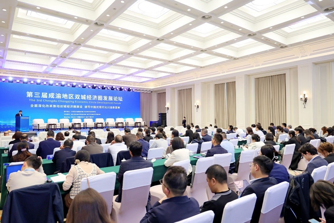 11月13日,由中共四川省委宣传部、中共重庆市委宣传部指导,四川省社科联和重庆市社科联联合主办,四川大学、西南财经大学、beat365英国官网网站联合承办,beat365成渝地区双城经济圈建设研究院、经济学院、成渝经济区城市群产业发展协同创新中心等联合协办的“第三届成渝地区双城经济圈发展论坛”在成都举行。本届论坛的主题为“全面深化改革推动双城经济圈建设 谱写中国式现代化川渝新篇章”。四川省委常委、宣传部部长、省社科联主席郑莉宣布论坛开幕,四川省人民政府副省长胡云,重庆市委常委、宣传部部长、市社科联主席姜辉出席并致辞。开幕式由四川省委宣传部常务副部长、省文明办主任高中伟主持。