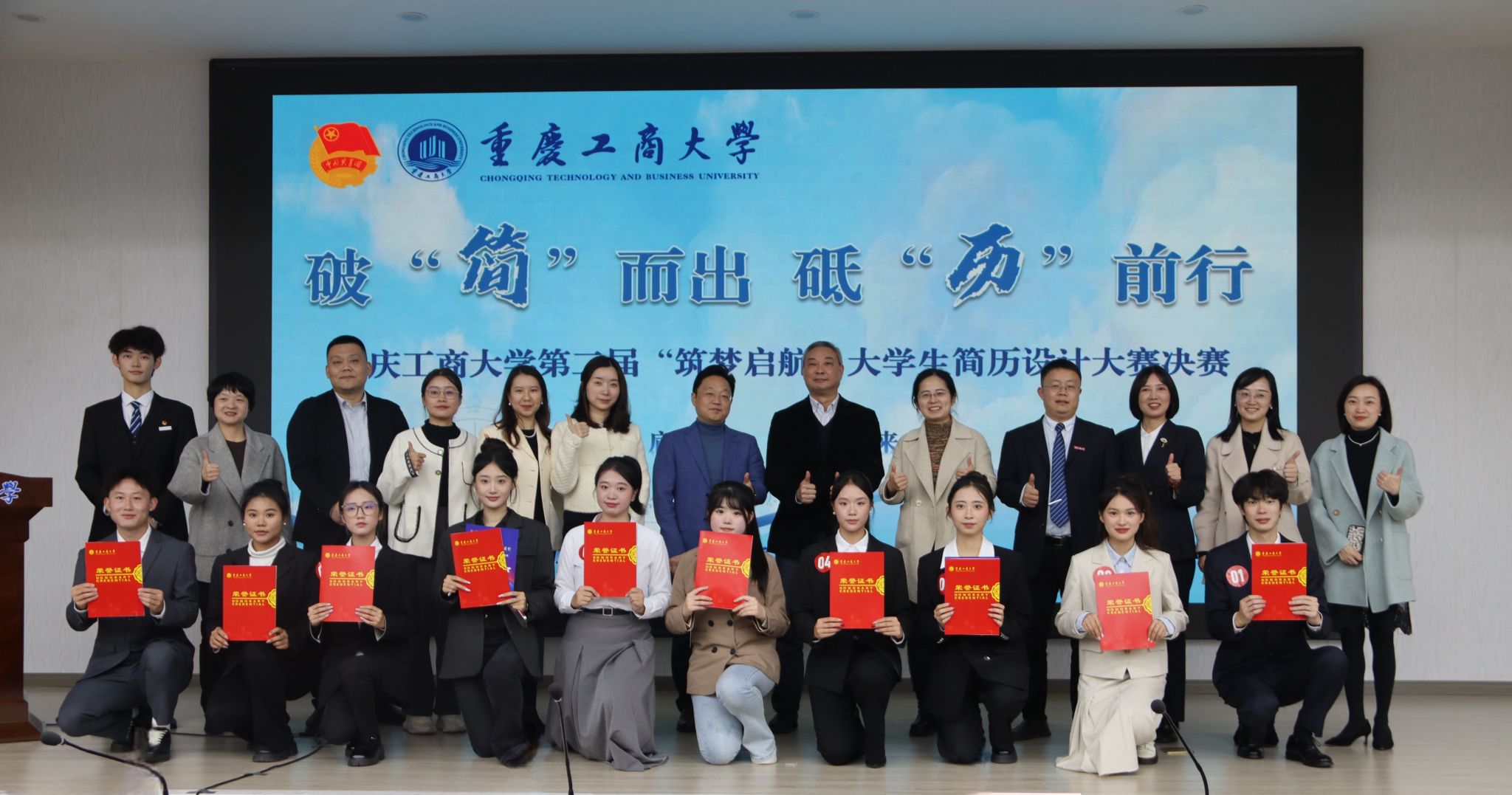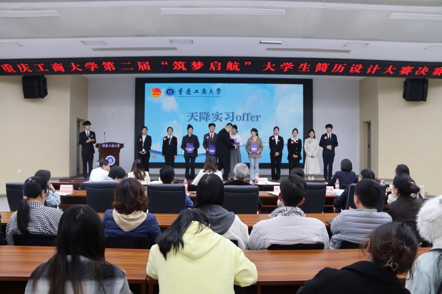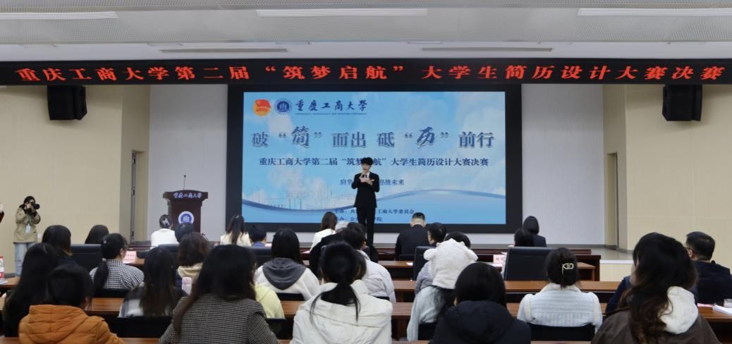 11月22日,由校团委主办、公共管理学院承办的beat365第二届“筑梦启航”大学生简历设计大赛决赛于南岸校区明德楼1019报告厅举办。党委常委、副校长李国军,团市委高校工作部副部长刘丽霞,党委学工部部长申卫东,校团委书记吴佑波、副书记王微,公共管理学院党委书记陆嘉、副书记谢书楠与现场200余名同学共同观摩比赛。大赛邀请了中国电信重庆南岸分公司党委委员、副总经理侯思羽,招商银行重庆分行人力资源部副总经理王肖潇,智联招聘重庆分公司总经理杨帆,赛力斯集团股份有限公司校招负责人吴倩,珠海万达商管重庆分公司人事行政高级经理杨利担任评委。
