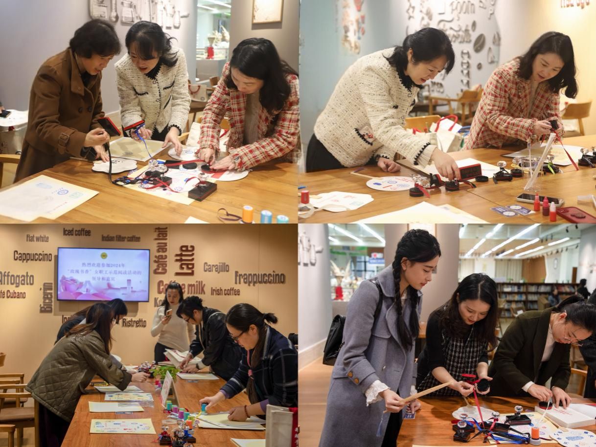 活动在浓厚的文化氛围中拉开序幕。女职工们在翠湖书吧参与拓印分享环节。她们亲手将印有“红岩巾帼志,书香绽芳华”“女职工阅读活动”等活动主题字样的印章拓印在纸扇或卡纸上,体验传统文化的独特魅力,加深对活动主旨精神的理解。女职工们相互交流拓印心得,分享对“红岩巾帼志”和“书香绽芳华”的独到见解,现场洋溢着轻松快乐、积极向上的精神风貌。