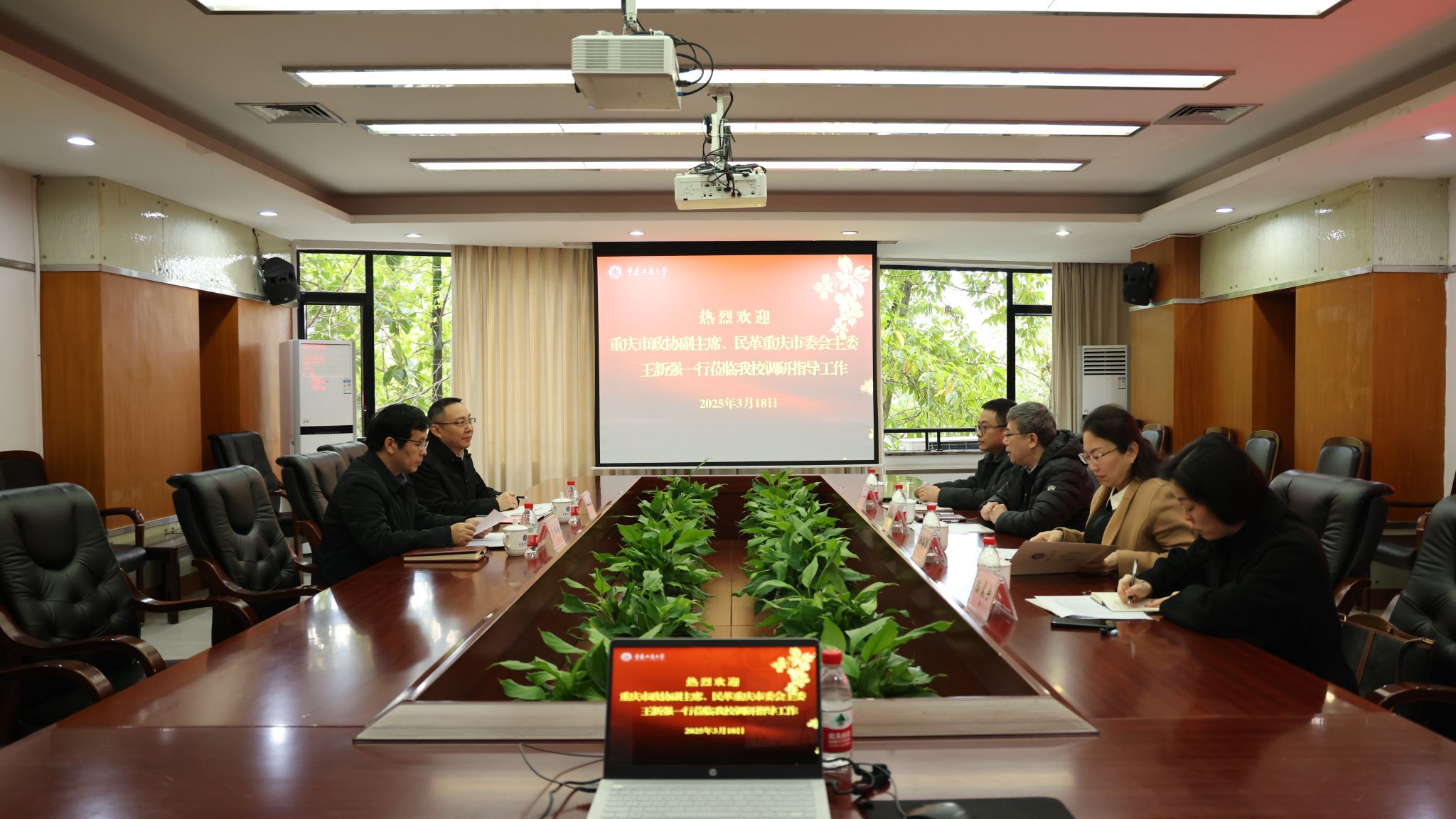 3月18日上午,重庆市政协副主席、民革重庆市委会主委王新强一行到beat365调研走访,学校党委书记曾维伦在厚德楼3020会议室会见了王新强一行。