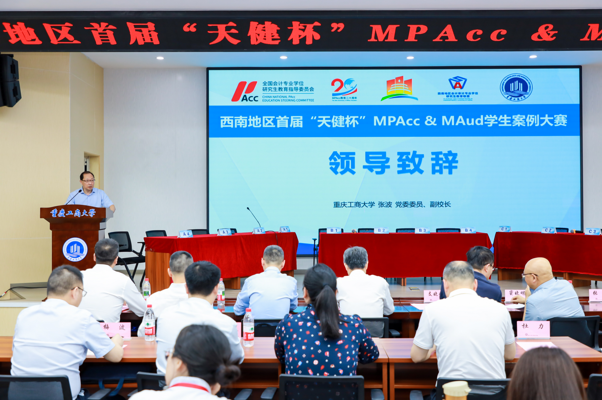 张波在致辞中表示,西南地区MPAcc&MAud学生案例大赛是学生提高专业素养、开拓个人眼界、提升综合创新能力的难得机遇,也是推动各高校以赛促学、以学促用、以用促改,探索复合型、应用型、创新型人才培养模式的重要平台,能够有力推动会计审计硕士教育事业的高质量发展。