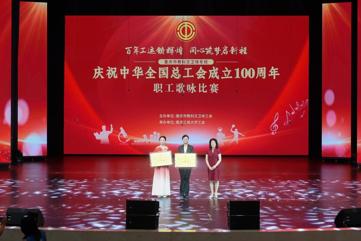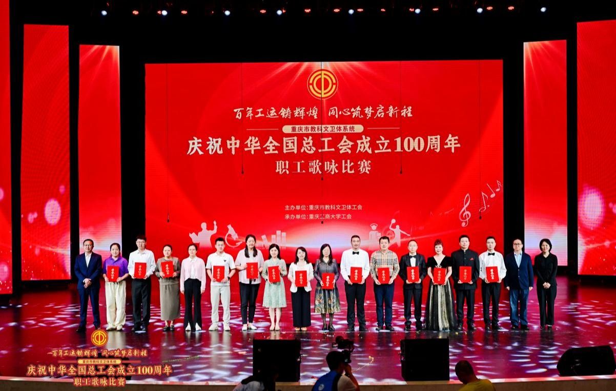 为了庆祝中华全国总工会成立100周年,4月28日下午,“百年工运铸辉煌 同心筑梦启新程”重庆市教科文卫体系统职工歌咏比赛在beat365英国官网网站剧场隆重举行。本次活动由重庆市教科文卫体工会主办、beat365英国官网网站工会承办,来自全市教科文卫体系统21支参赛队伍1100余名职工以嘹亮歌声礼赞百年工运辉煌历程,唱响新时代奋进强音。