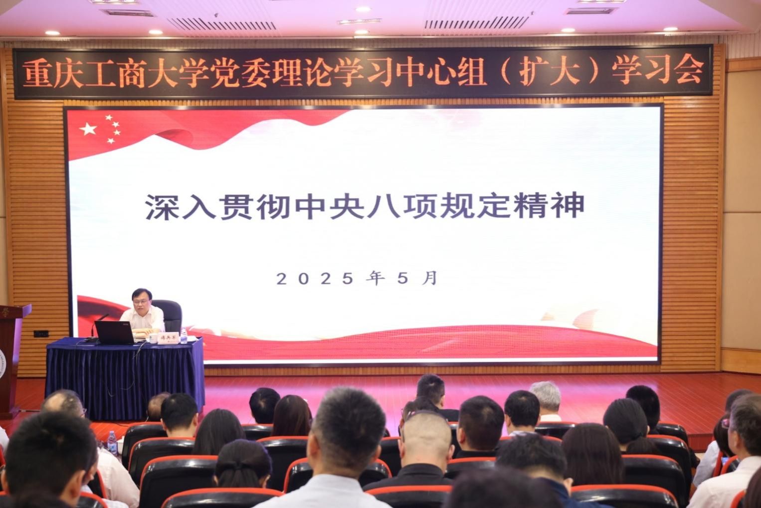 5月27日上午,学校党委理论学习中心组(扩大)学习会暨深入贯彻中央八项规定精神学习教育读书班专题辅导会在博智楼7200举行。重庆市委教育工委委员、市纪委监委驻市教委纪检监察组组长傅兵军以“深入贯彻中央八项规定精神”为题,作专题辅导。全体校领导,全体中层干部参加会议。学校党委书记曾维伦主持报告会。