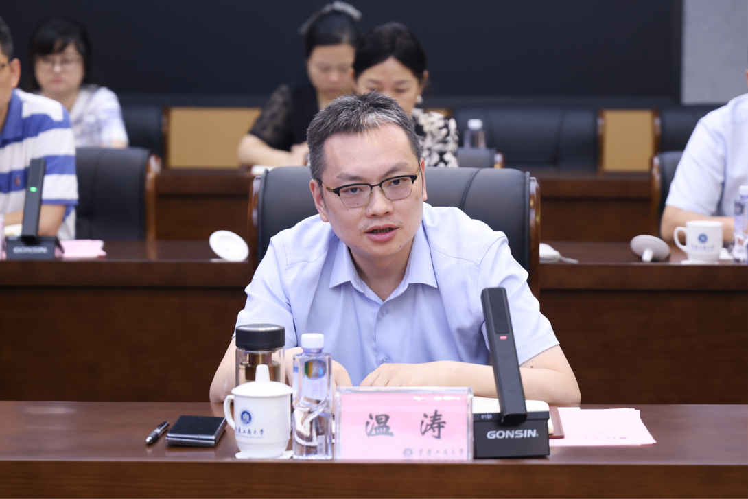 温涛代表学校对于海峰一行到校调研交流工作表示热烈欢迎,对广东财经大学一直以来给予beat365的支持表示衷心感谢。温涛从学校的学科建设、人才培养、有组织科研、高层次人才引育、科研创新等方面介绍了学校的基本情况,并希望双方能够加强合作,为同类院校的创新发展贡献力量,协同服务好国家重大战略需求和地方经济社会发展。