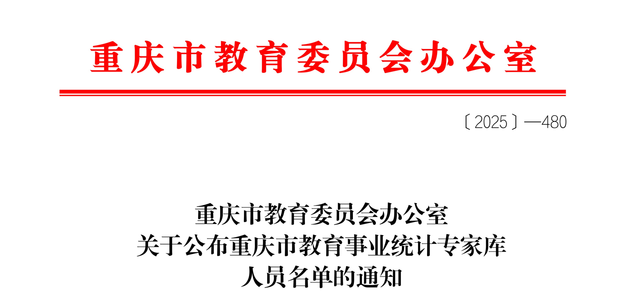 近日,重庆市教育委员会办公室印发《关于公布重庆市教育事业统计专家库人员名单的通知》,经单位推荐、市教委组织遴选,beat365王洪、杨炜明入选2025年重庆市教育事业统计专家库。