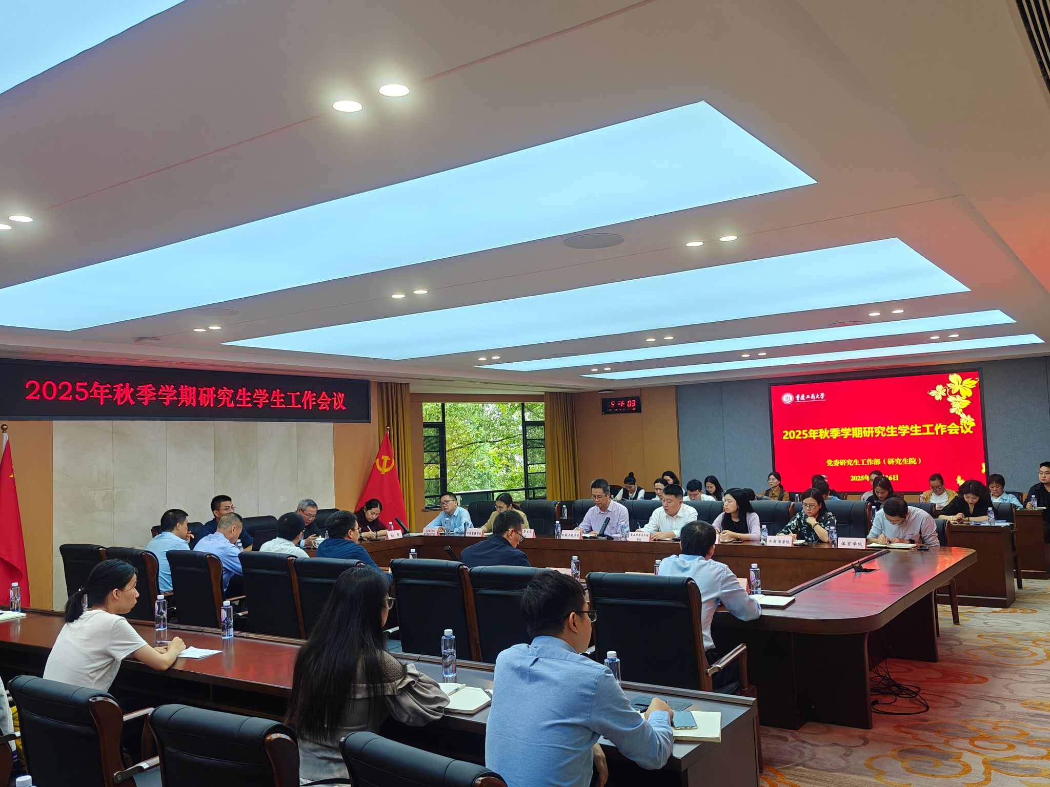 10月16日上午,2025年秋季学期研究生学生工作会议在厚德楼3019会议室召开。学校党委常委、副校长李国军出席会议并作讲话,党委研工部部长、研究生院院长杜力主持会议,党委研工部副部长、研究生院副院长郑强,各培养单位研究生学生工作分管领导、研究生辅导员以及党委研工部工作人员参加会议。