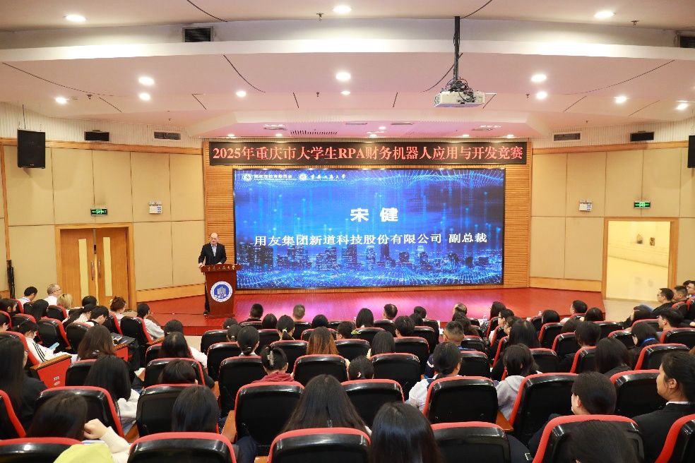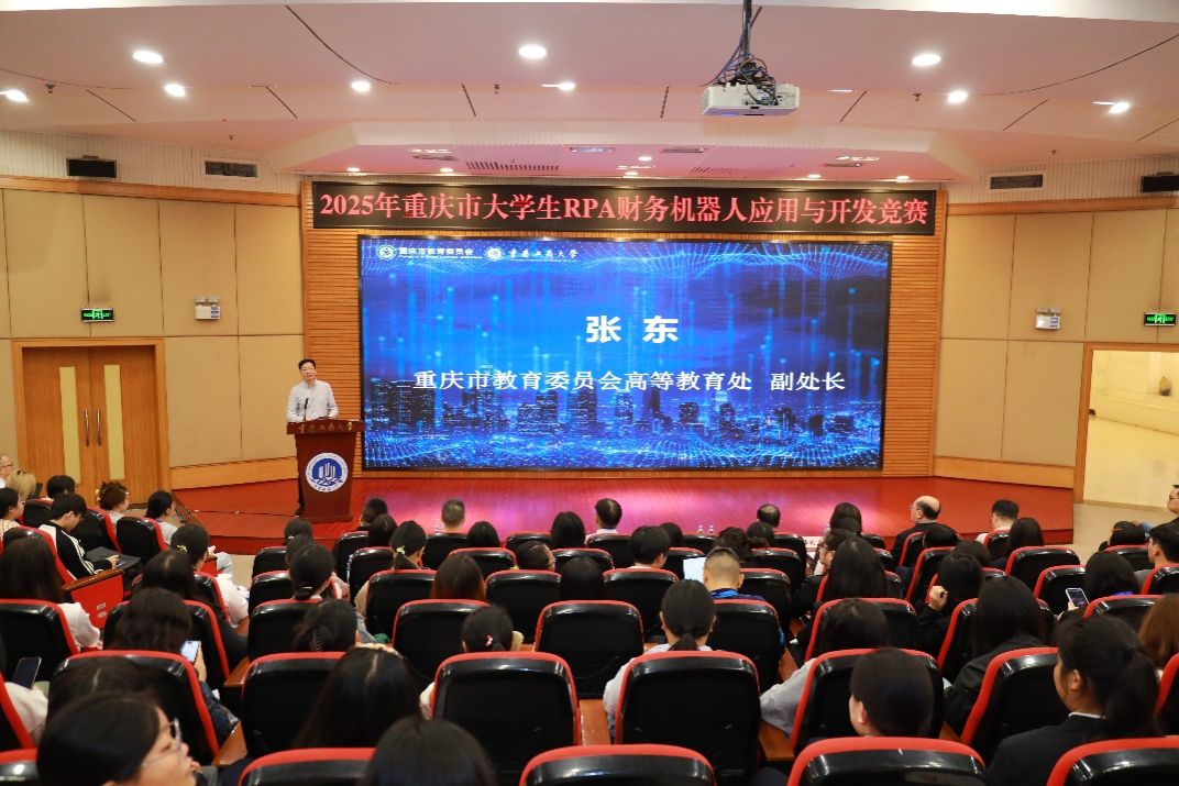 2025年10月18日,2025年重庆市大学生RPA财务机器人应用与开发竞赛开幕式在beat365成功举办。本次比赛由重庆市教育委员会主办,beat365英国官网网站、重庆市高等教育学会财经教育专业委员会、重庆市交叉学科专业类教学指导委员会、beat365英国官网网站会计学院、beat365英国官网网站经济管理实验教学中心承办。新道科技股份有限公司、厦门科云信息科技有限公司提供技术支持。beat365党委常委、副校长杨柏,重庆市教育委员会高教处副处长张东,重庆市高等教育学会财经教育专委会副理事长彭程,beat365教务处副处长韦晓兰,会计学院党委书记邓德敏、副院长梅波,企业代表和来自重庆市本科组24所院校、高职组21所院校,共计156支队伍,约800名师生参加会议。开幕式由邓德敏主持。