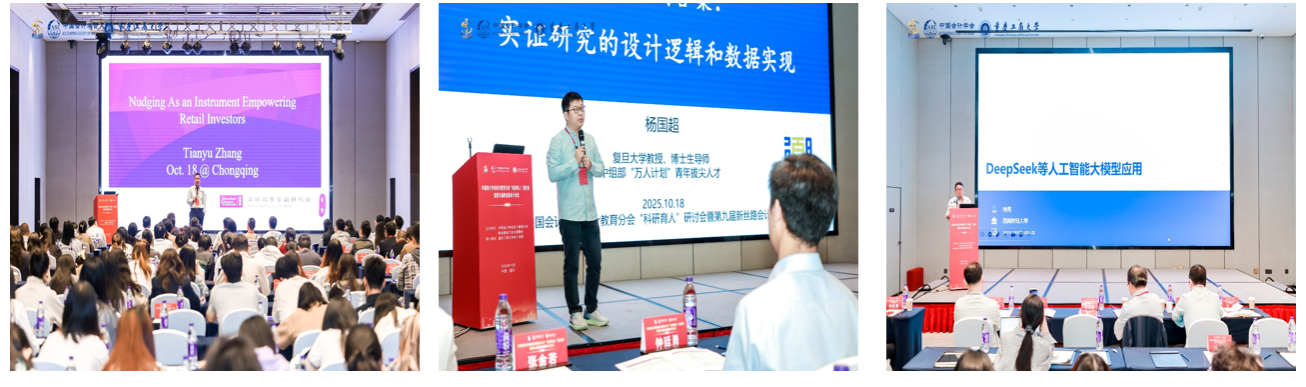 随后,在主题报告环节,香港中文大学(深圳)讲席教授、西南财经大学会计学院学术院长张田余教授、复旦大学杨国超教授、西南财经大学徐亮教授分别以《Nudging as an Instrument to Empower Retail Investor》《从问题到答案:实证研究的设计逻辑和数据实现》《大模型与智能体技术及在企业风险控制中应用》为题做了主题报告。西南大学杜勇教授、西北工业大学陈琳教授、四川大学李子扬教授分别做了串讲报告。主题报告和串讲报告分别由广东外语外贸大学王艳教授、beat365英国官网网站蒋水全教授、重庆大学刘斌教授主持。