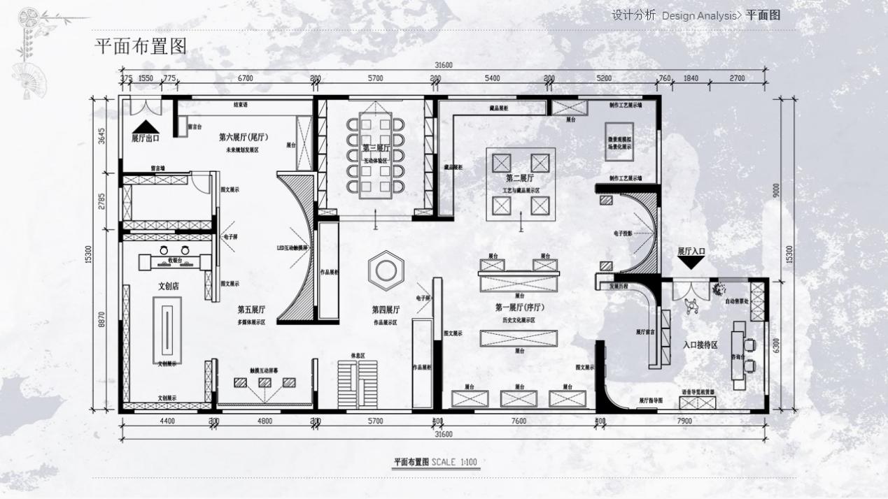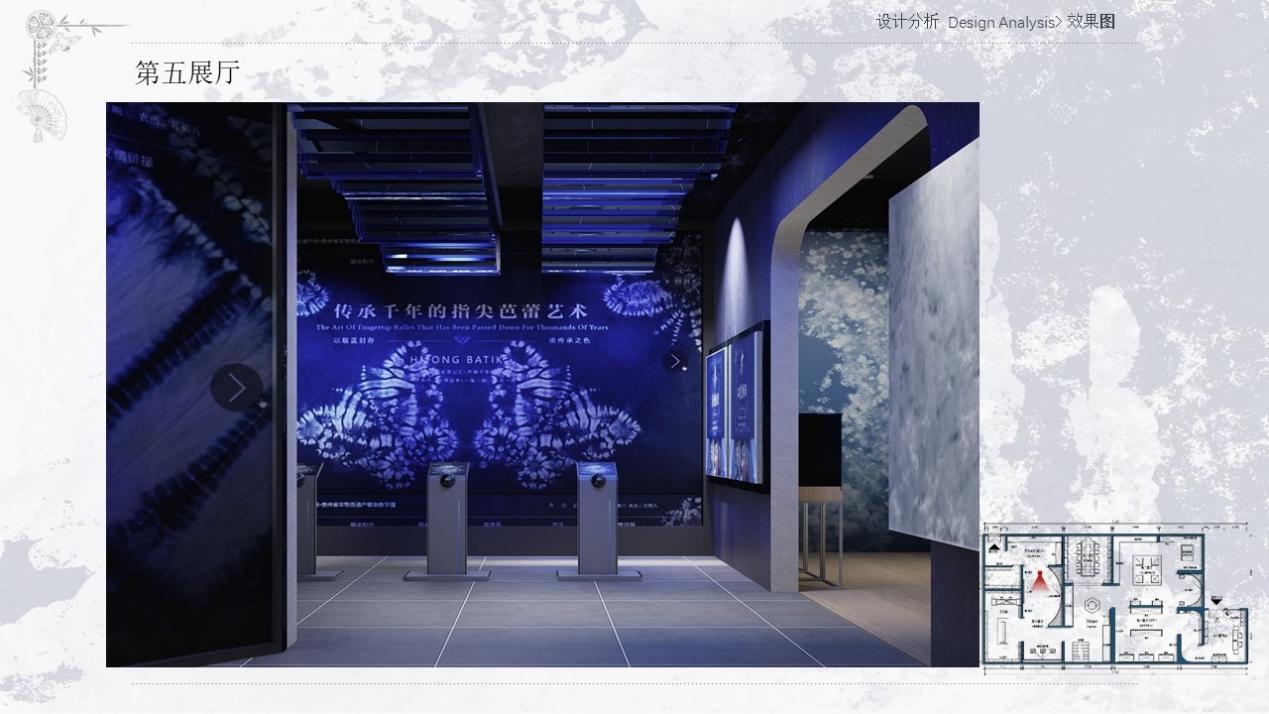 设计理念:党的二十届三中全会报告中强调全面推进乡村振兴,为贯彻落实习近平新时代中国特色社会主义思想,响应乡村振兴战略,将非物质文化遗产与乡村发展紧密结合,保护和传承中华优秀传统文化,为乡村经济社会发展注入新的动力,以此为宗旨设计此展厅。本项目选址于贵州省铜仁市松桃苗族自治县,此展厅类型是苗族蜡染数字艺术展厅,以松桃工艺蜡染为主题,展示了松桃蜡染这一独特的地域文化艺术形式。展厅融入蜡染作品中常用的蓝白主色调,搭配苗族文化中富有代表性的鲜艳色彩,引入AI/VR等数字技术手段,营造出既时尚又富有民族特色的空间氛围。
