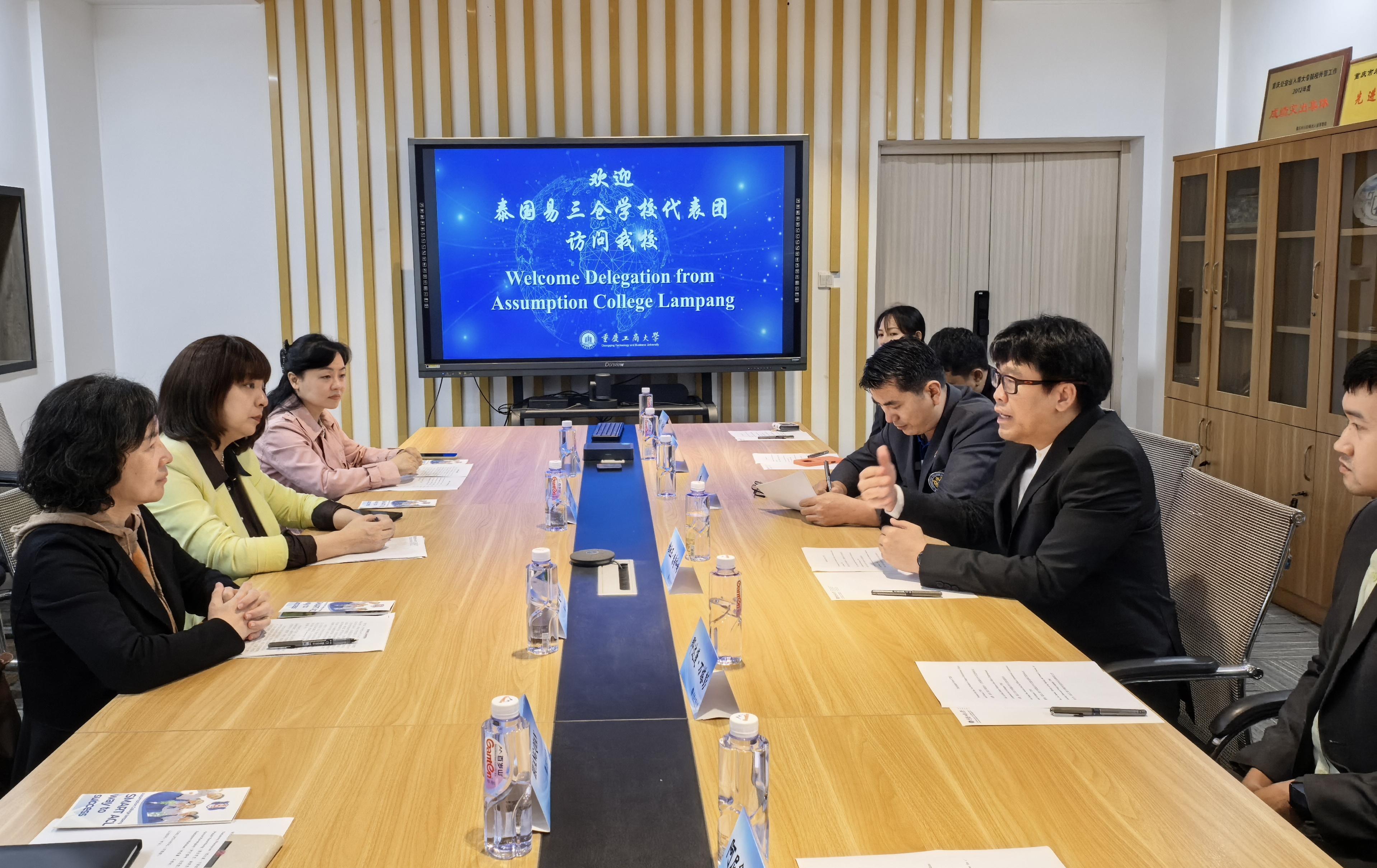 10月24日,泰国南邦易三仓学校校长维他亚・泰普科姆(Witthaya Thepkom)先生一行访问beat365。党委常委、副校长柏群会见了代表团,国际合作与交流处、留学生院、对外汉语教研室负责人参加了会谈。