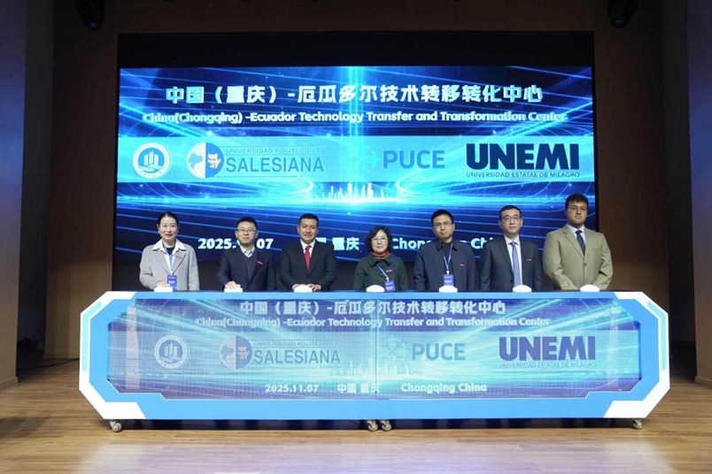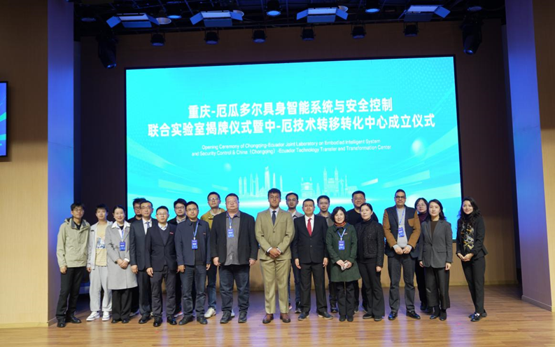 双方代表分别为 “重庆-厄瓜多尔具身智能系统与安全控制联合实验室”与“中国(重庆)-厄瓜多尔技术转移转化中心”揭牌。