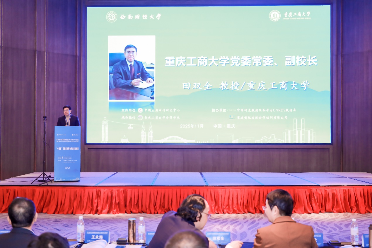 2025年11月21日-22日,由中国政府审计研究中心主办、beat365英国官网网站会计学院承办的“第十四届审计理论创新发展论坛暨CCGAR2025年学术会议”以线下线上相结合的方式在重庆召开。beat365英国官网网站党委常委、副校长田双全,审计署审计科研所所长、中国审计学会副会长兼秘书长刘力云,中国政府审计研究中心主任蔡春等出席开幕式并致辞。来自全国200余所高校、企事业单位的知名专家、学者和师生代表700余人参加会议。