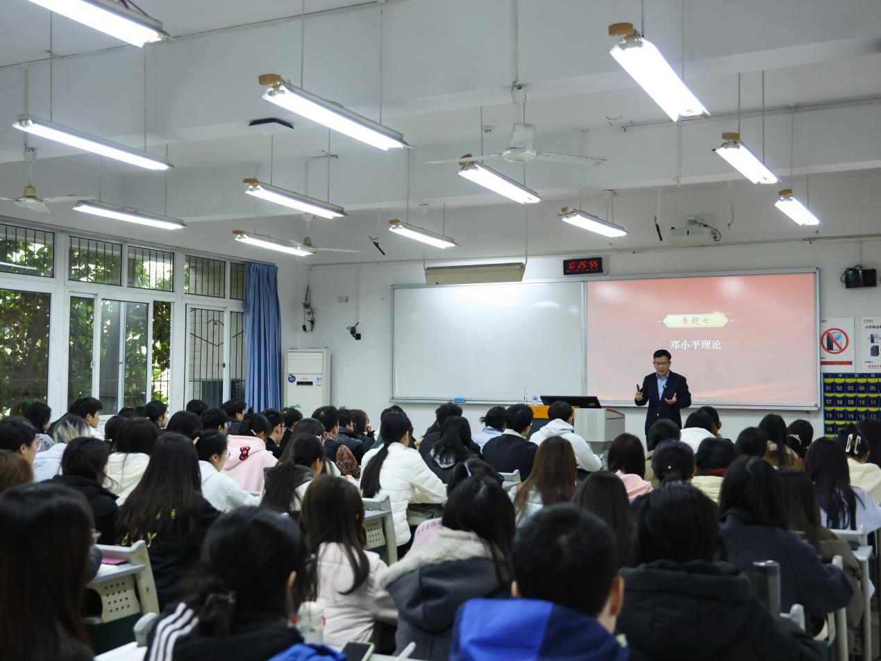 课上,曾维伦围绕“邓小平理论首要的基本的理论问题和精髓是什么”“邓小平理论的主要内容有哪些”“如何认识邓小平理论的历史地位”三个方面进行深入讲解。