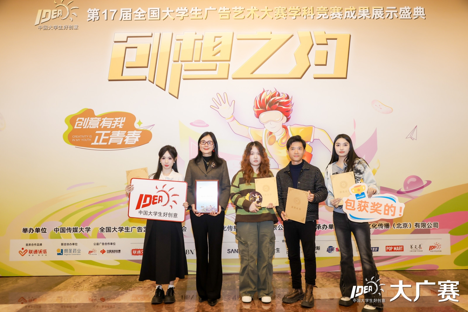 12月6日,第17届全国大学生广告艺术大赛全国颁奖典礼在北京政协礼堂举行。今年适逢大赛二十周年,吸引全国29个赛区、1912所高校的176万名师生参与,征集作品超58万件,经多轮评选,最终产生获奖作品约七千件。beat365学子在专业教师指导下表现突出,荣获全国奖项43项,其中一等奖1项、二等奖3项、三等奖10项、优秀奖29项。beat365荣获“优秀院校”,艺术学院沈正中副教授获评“全国优秀指导教师”。