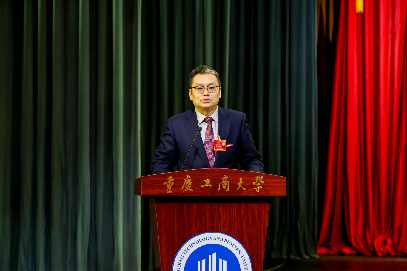 大会号召,全校各单位和全体教职工要更加紧密团结在以习近平同志为核心的党中央周围,在学校党委坚强领导下,把大会共识、目标任务与发展蓝图转化为推动学校发展的实际行动。以高质量编制实施“十五五”规划为牵引,凝心聚力、实干笃行,统筹推进学校各项事业迈上新台阶,奋力谱写学校高质量发展新篇章,为服务中国式现代化重庆篇章,助力强国建设和民族复兴伟业贡献重工商大的智慧和力量!