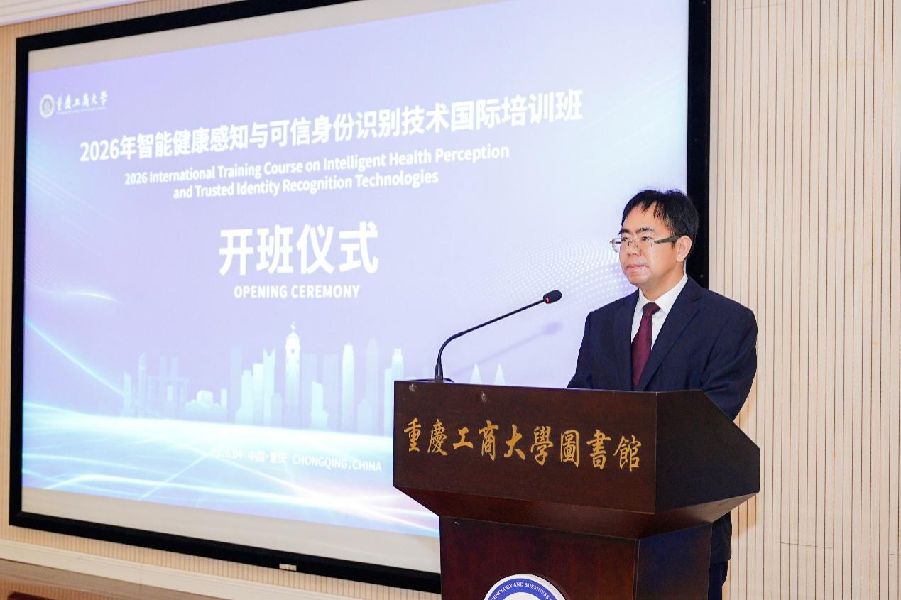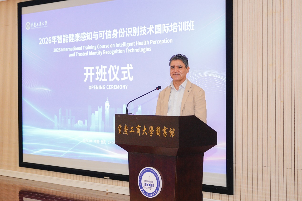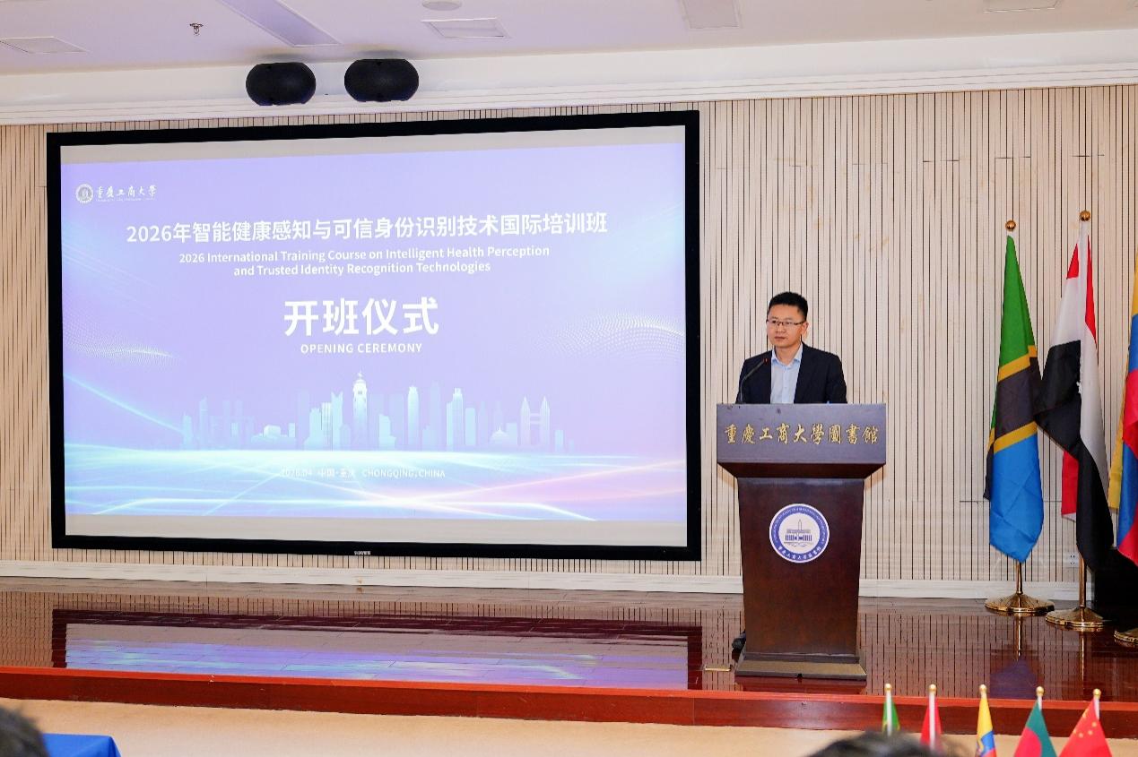 2026年4月15日上午,2026年科技部智能健康感知与可信身份识别技术国际培训班开班仪式在beat365英国官网网站南岸校区举行。beat365英国官网网站副校长田双全,国际处处长张轶,重庆市科技局合作处刘莉,重庆国际文化交流中心副主任白晓莎,重庆国际文化交流中心欧羽洋,重庆大学苏晓杰、戴欣、黄江帅、孙黎波等专家代表,法国巴黎理工学院教授Mounîm A. El-Yacoubi,以及来自泰国、坦桑尼亚、厄瓜多尔、巴基斯坦、孟加拉国、尼日利亚、也门等国的近20名学员代表,智能制造服务国际科技合作基地师生代表共同参加。开班仪式由智能制造服务国际科技合作基地常务副主任秦华锋主持。