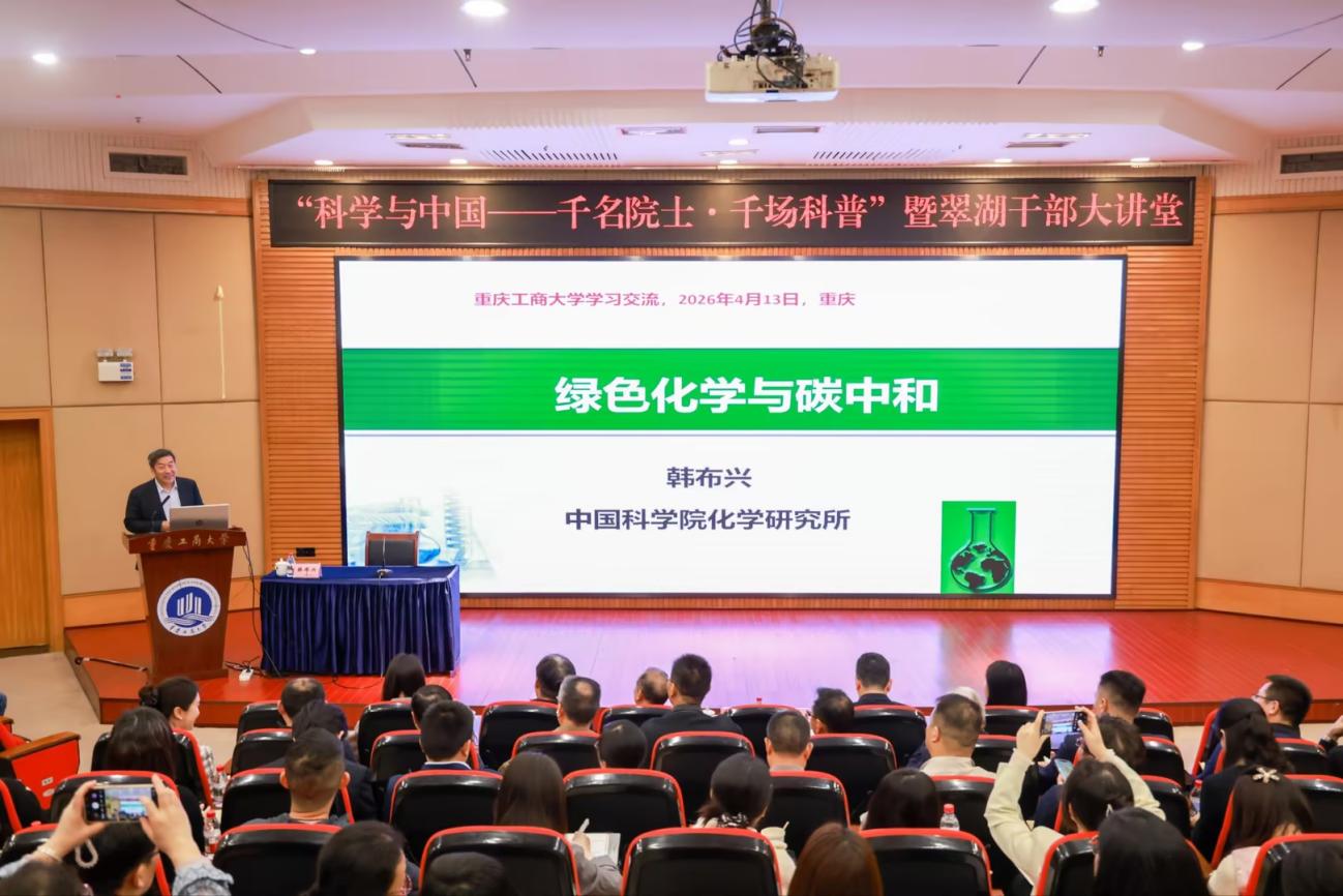 4月13日上午,“科学与中国——千名院士·千场科普”暨翠湖干部大讲堂在beat365英国官网网站博智楼7200报告厅举行。中国科学院院士韩布兴应邀作题为“绿色化学与碳中和”的学术报告。重庆市科协党组成员、副主席谭明星出席报告会,学校党委副书记唐勇主持报告会,党委常委、副校长杨柏出席并致辞。
