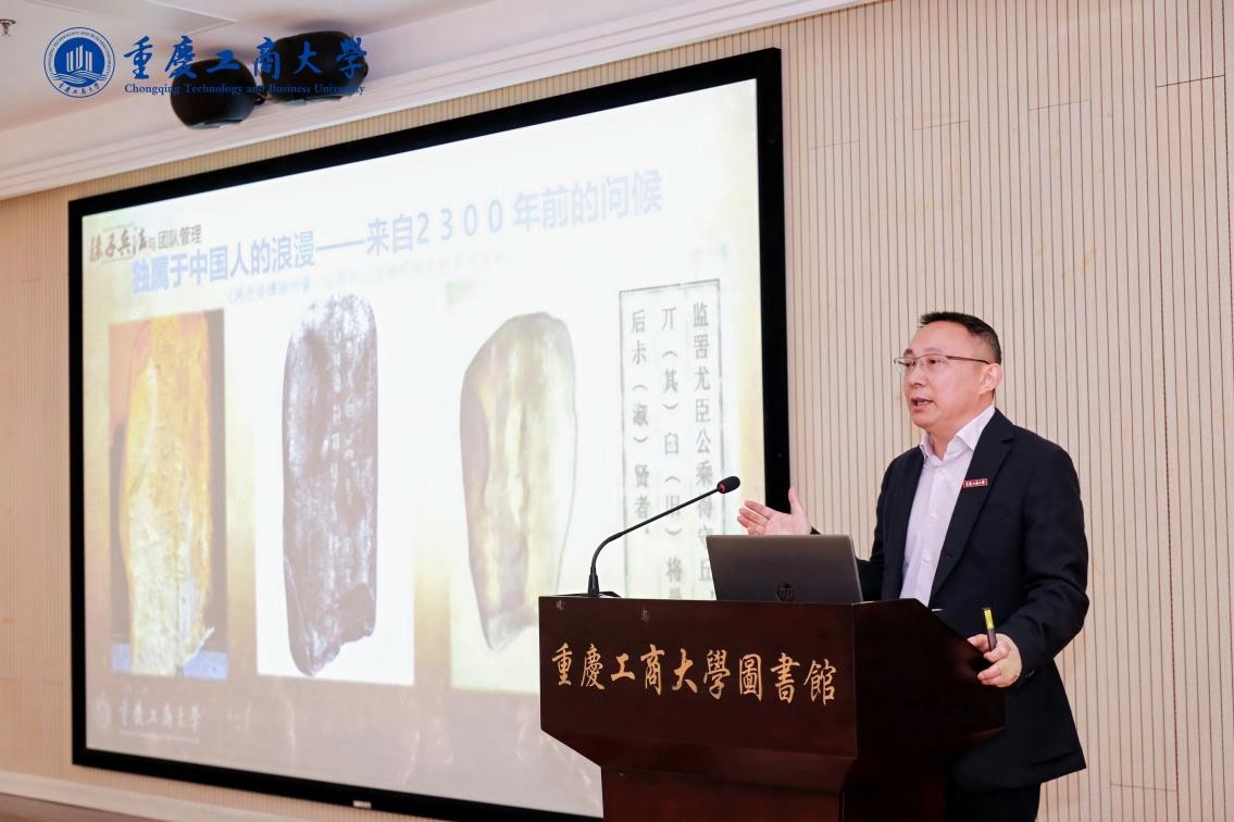 讲座中,华杰梳理了中华传统文化的发展脉络与兵法文本的演变。他结合历史典故与现代管理学理论,对《孙子兵法》中蕴含的核心思维进行细致讲解。讲座围绕“不问鬼神、实事求是”的唯物世界观、“保民之愿、视卒如子”的慈悲人本观、宏大广阔的战略思维等方面展开,鼓励校友们在管理实践中培养独立批判思维与创新思维。