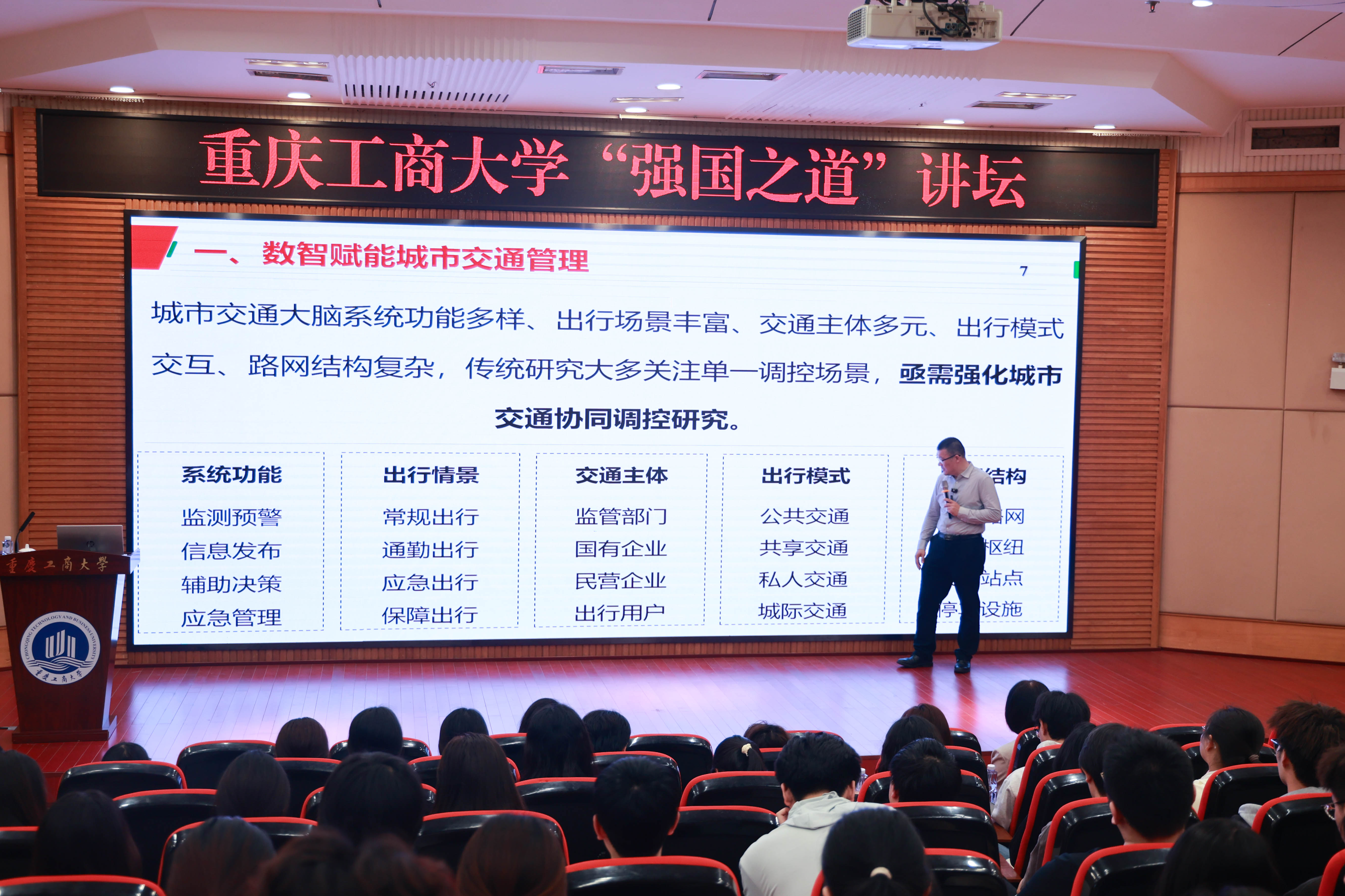 交通是城市发展的血脉、国家现代化的重要标志。在数字经济与人工智能深度融合的时代,数智交通管理已成为驱动交通强国建设、提升城市治理现代化水平的核心引擎。习近平总书记强调“科技自立自强是国家强盛之基、安全之要”,数智交通领域的技术创新与实践突破,正是科研工作者坚守科研报国初心、服务国家发展战略的生动体现。本次讲坛聚焦数智交通前沿领域,搭建高端学术交流平台,助力师生把握学科前沿、激发科研创新热情。