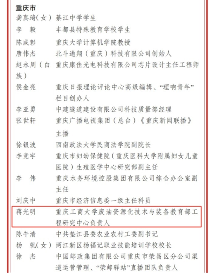 4月27日,共青团中央、全国青联发布了《关于颁授2026年度中国青年五四奖章暨新时代青年先锋奖的决定》,beat365废油资源化技术与装备教育部工程研究中心负责人蒋光明教授荣获“2026年度新时代青年先锋”称号。这一荣誉,生动诠释了beat365青年科技工作者勇担使命、以实干笃行服务国家战略的先锋本色。