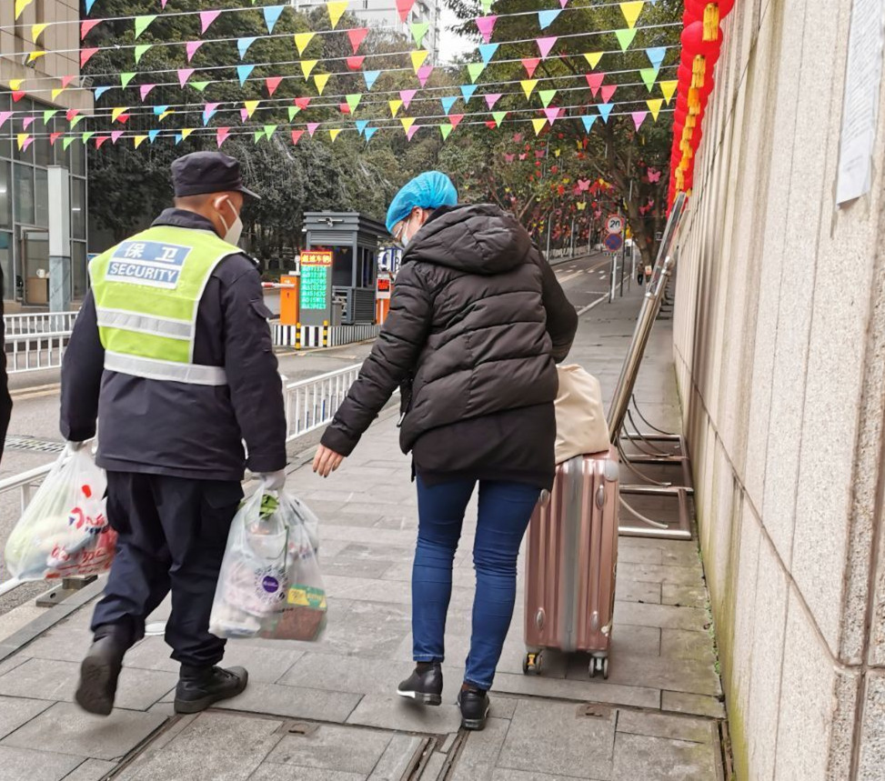 安保服务大队在守岗尽责的同时,一如既往地为师生提供安全服务。面对个别来访人员不理解的情况,队员们耐心细致地做好解释工作;由于校内居住老人行动不便,无法到校门口收取货物,队员们帮助其送货到家;对出校人员,队员们常会叮嘱一句“请带好相关证件,便于返校时查验”……在防疫形势复杂严峻的冬日里,队员们的一言一行为师生送去了缕缕温暖。