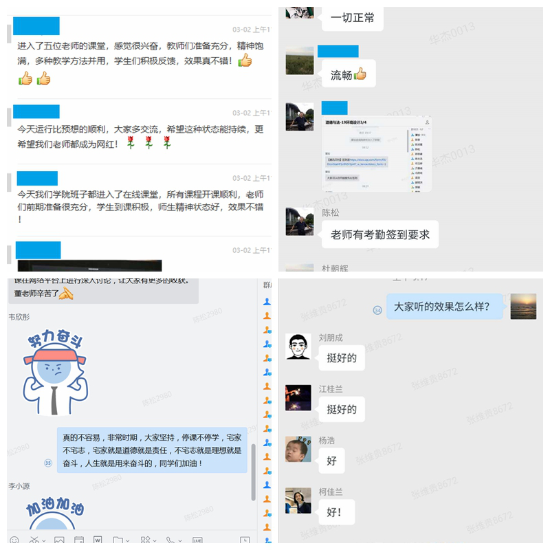 为确保在线教学顺利开展,各个学院领导,系主任,任课教师付出了极大的努力。基础不好、没有基础的各个年龄层次的教师,从头学起,短时间内不仅达到了教学要求,而且掌握了在线教学技能技巧。专家和基础较好的老师,发扬了奉献精神,不计得失,对其他老师给予了极大的帮助。