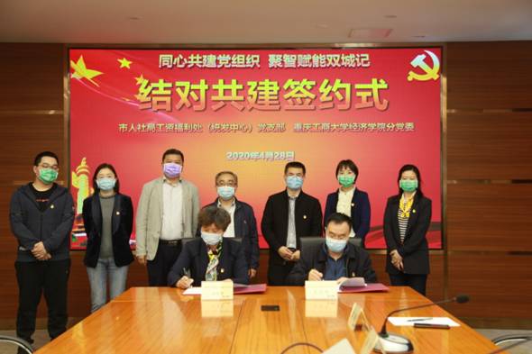 工资福利处(统发中心)党支部书记程卫民处长介绍了支部基本情况,就下一步两个党组织围绕成渝地区双城经济圈建设,发挥双方党组织优势和业务专长提出了初步设想。王小玲介绍了学院党组织基本概况,并就下一步两个党组织在分析研究、聚智献策,实现党的建设和业务工作深度融合方面提出设想,并就双方如何帮助就业困难学生提出设想。随后,双方党组织负责人一起签署了《基层党组织结对共建协议书》。