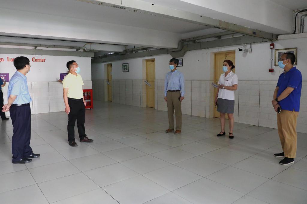5月18日,孙芳城校长一行先后到学校食堂和学生宿舍区查看学生返校和疫情防控工作运行情况。