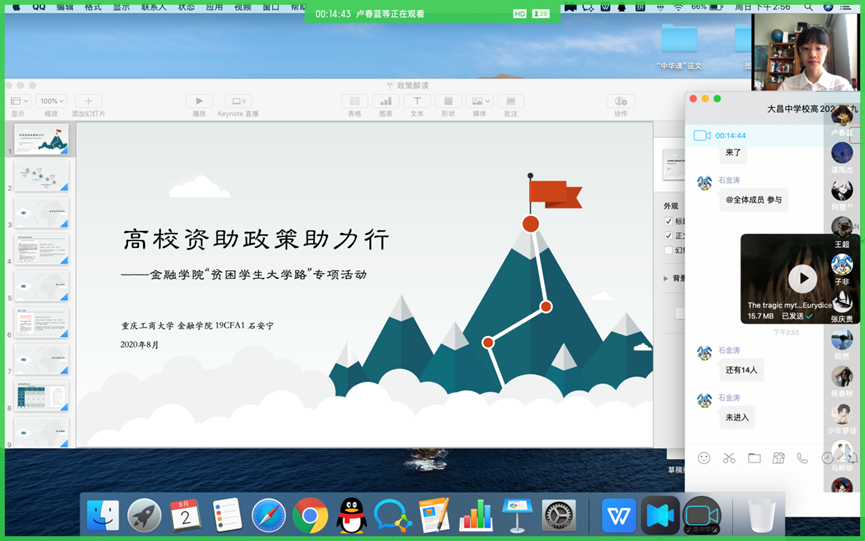 为更好的宣传和宣讲国家脱贫攻坚、助学政策,8月5日下午、6日上午,beat365金融学院“金夏归故,融惠兴乡”脱贫攻坚服务团队员石安宁、贺超分别线上连线大昌中学学生,线下邀请双江中学部分贫困毕业生,开展“高校资助政策助力行”宣讲活动,进行贫困大学生帮扶政策的解读。