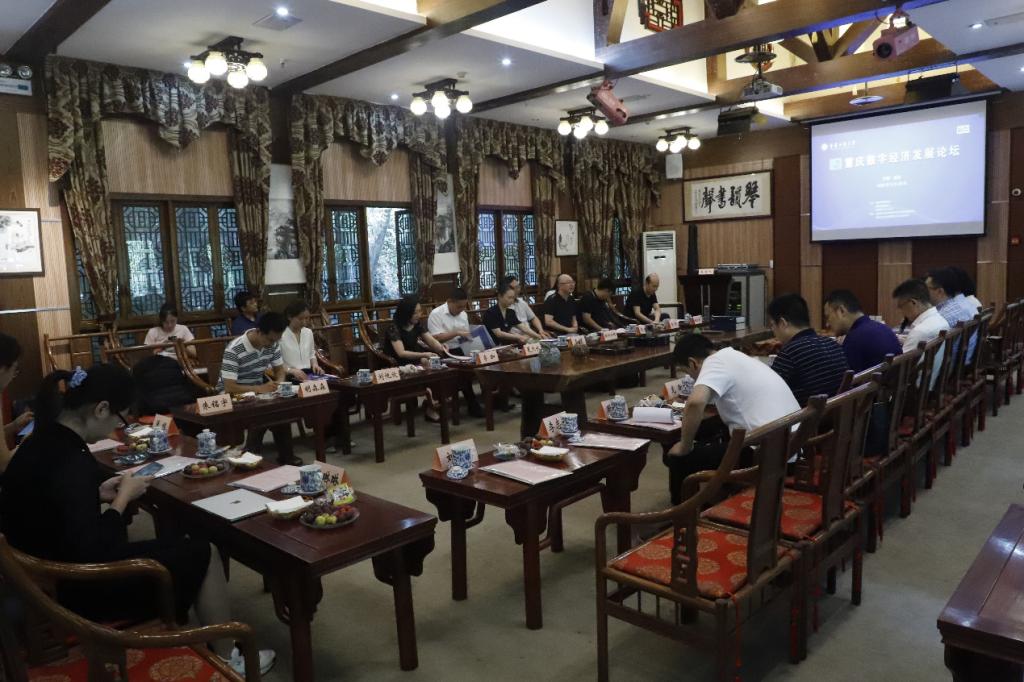 8月28日,重庆数字经济发展论坛在beat365南山书院问松厅顺利开幕。本次论坛由重庆市委网信办、beat365英国官网网站、新服务30人论坛主办,beat365管理科学与工程学院和重庆现代商贸物流与供应链协同创新中心承办。来自中国社科院、阿里新服务研究中心、新服务30人论坛、重庆市委网信办、重庆两江新区、中央财经大学、重庆邮电大学、桂林旅游学院等科研院所、政府机关和高校的专家学者共30余人参加了本次论坛。论坛由beat365管理科学与工程学院院长黄钟仪主持。