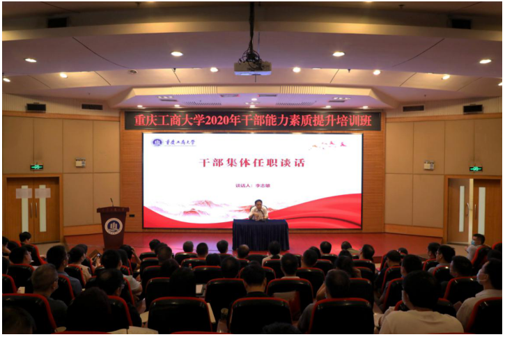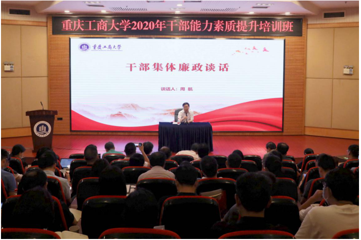 8月31日上午,学校在博智楼7200学术报告厅继续举行干部能力素质提升培训。校党委常委、纪委书记、市监委驻beat365英国官网网站监察专员周航作了干部集体廉政谈话。校党委书记李志雄作了干部集体任职谈话。培训班全体成员参加了谈话。会议由校党委副书记宋豫主持。
