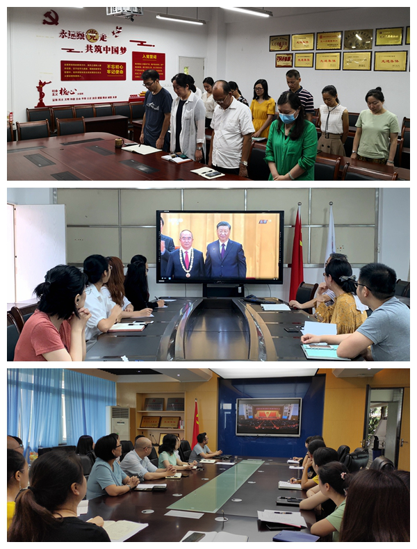 在表彰大会的直播过程中,大家聚精会神,怀着无比激动和崇敬的心情,认真观看了习近平总书记向国家勋章和国家荣誉称号获得者颁授勋章奖章,以及大会对全国抗击新冠肺炎疫情先进个人、先进集体,全国优秀共产党员、全国先进基层党组织进行表彰的重要时刻,并认真聆听了习近平总书记在全国抗击新冠肺炎疫情表彰大会上发表的重要讲话。学校多个收听收看会场不时响起一阵阵热烈的掌声。