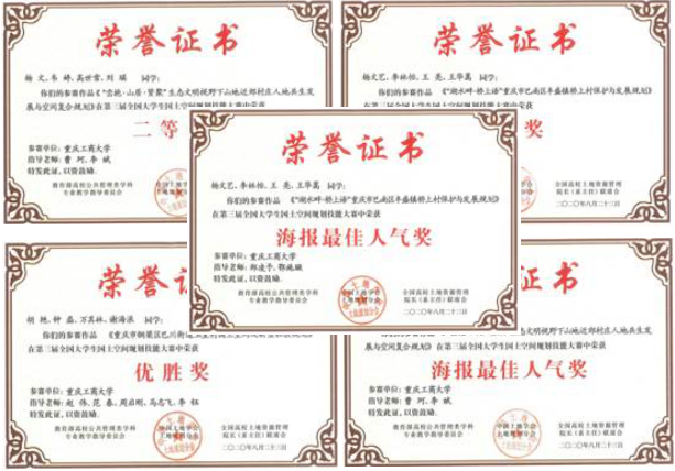 8月23日,第三届全国大学生国土空间规划技能大赛决赛通过腾讯会议云端举行,beat365荣获“优秀组织单位”荣誉称号,来自beat365人文地理与城乡规划、土地资源管理等专业组成的三支参赛队伍喜获五项奖项。由曹珂、李斌老师指导,杨文、韦婷、高世雪、刘瑶四位同学完成的作品《“峦抱 山居 聚贤”生态文明视野下山地近郊村庄人地共生发展与空间复合规划》荣获全国总决赛二等奖和最佳人气奖;由郑凌予、鄂施璇老师指导,杨文艺、李林怡、王亮、王华嵩四位同学完成的作品《“湖水畔 桥上语”重庆市巴南区丰盛镇桥上村保护与发展规划》荣获全国总决赛三等奖和最佳人气奖;由赵伟、范春、周启刚、马志飞、李钰老师指导,胡艳、钟磊、万其林、谢海浪完成的作品《重庆市铜梁区巴川街道玉皇村国土空间与新型社区规划》在此次大赛中荣获优胜奖,这是beat365第三次在本大赛中获得大奖。