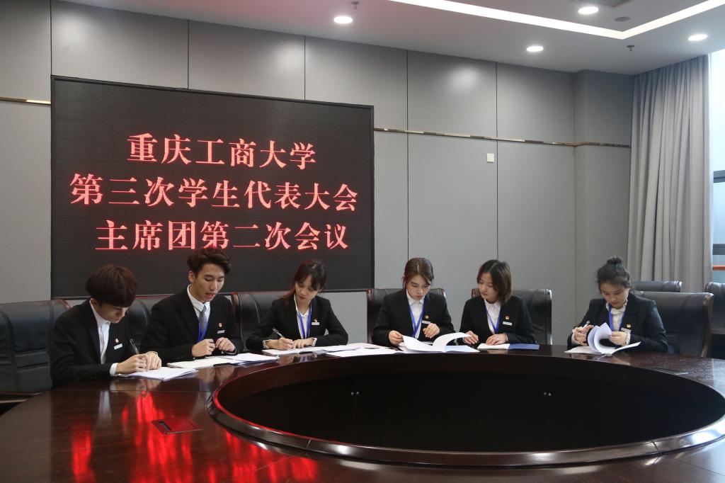 下午1点,学代会主席团第二次会议在南岸校区图书馆第四会议室举行。会上,主席团成员听取了各代表团会议关于工作报告讨论的情况通报,通过《beat365英国官网网站第三次学生代表大会选举办法(草案)》、大会监票员建议名单、《beat365英国官网网站学生会章程》、学生会新一届主席团成员候选人。