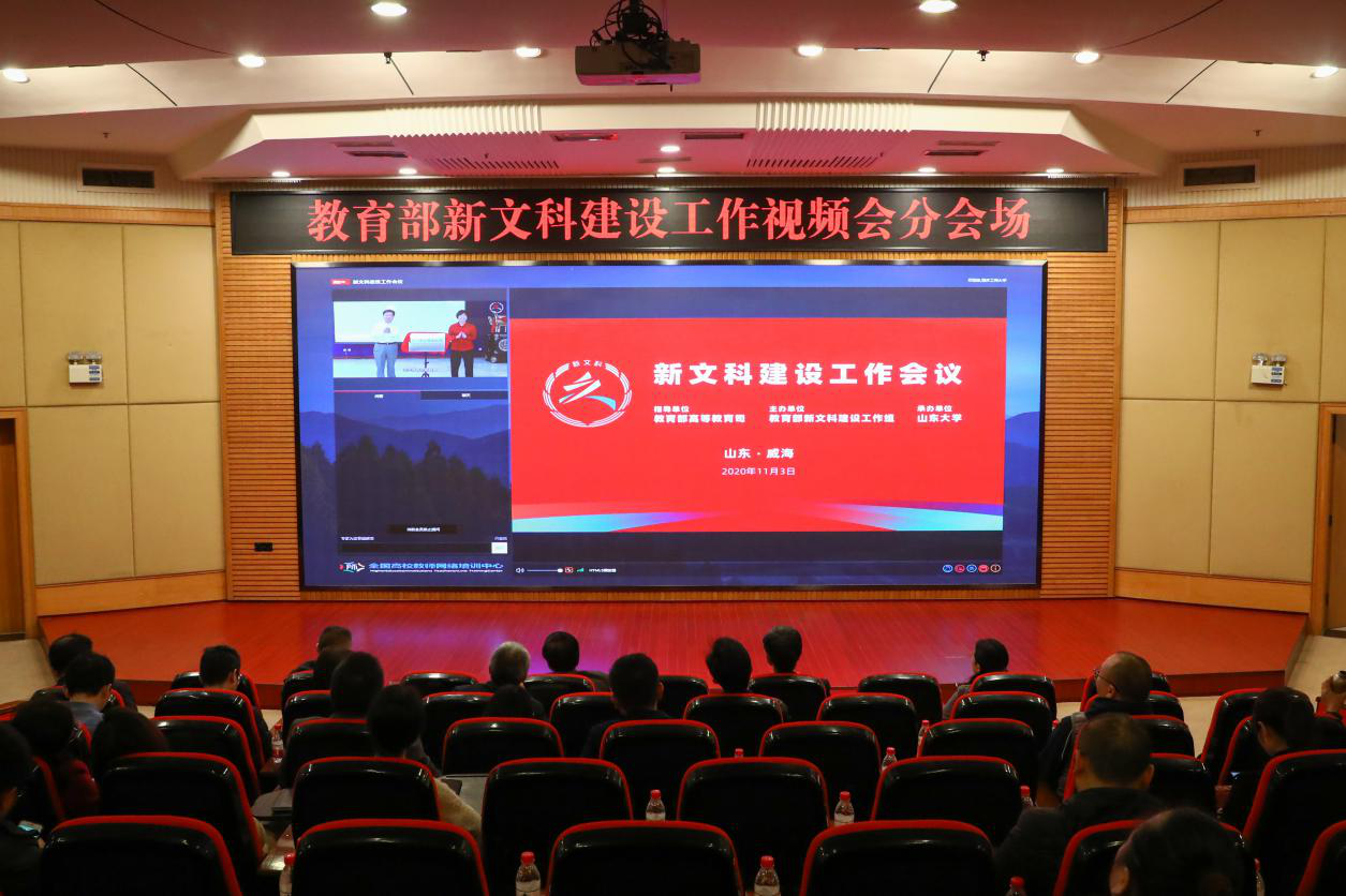 11月3日,由教育部新文科建设工作组主办的新文科建设工作会议在山东大学(威海)召开,发布《新文科建设宣言》,对新文科建设作出全面部署。会上,教育部高教司司长吴岩作题为《积势蓄势谋势识变应变求变全面推进新文科建设》主题报告。beat365在博智楼7200报告厅设立视频会分会场。校长孙芳城,副校长何勇平、柏群、李敬,国家教学指导委员会委员、各学院院长、教学副院长、系主任及骨干教师,教务处(创新创业学院)、国际合作与交流处等部门中干和相关科室负责人参加了视频会议。