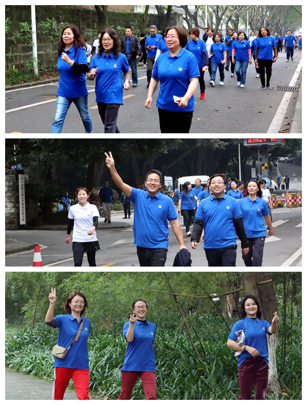 待裁判员一声令下,选手们精神饱满地从校前广场出发。天气晴好,老师们热情高涨,享受着欢乐健步走带来的快乐。活动结束后,选手们一起合影留念。