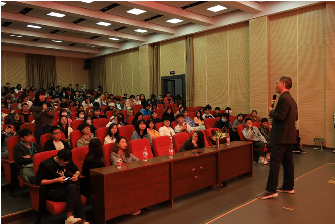 讲座中,陈运超以“大学的迷惑”破题,先后从缺少方向感、与中学阶段相比突然增多的时间带来的困惑、不擅交往的胆怯与自卑和听不懂课的无助等方面,为大家分析了初入大学应该解决的思想层面问题。在思想的认知上,他用统一行动与分散行动,形象地阐释了大学与中学的区别,他告诉大家,读一个好大学,要善于提问,不学死知识,要经常自我审视和探究自己。在具体的操作上,陈运超建议同学们要变被动接受为主动出发,并分享了尽快适应大学的“三找一重”秘诀:“找人”、“找方向”、“找方法”和“重塑信念”。找人,就是要跟老师互动,利用老师的知识来实质提升自己,找人,还要跟同学交往,站在对方的角度立场思考问题,达成兴趣、友谊和包容的统一;找方向,就是看准未来,准确识别自己和别人的优势,从中找到自己未来发展的路径,避免人越来越像机器或者被机器所俘获甚至驱使;找方法,就是把自己的思想,融入到自己的作品中,最后变成服务社会的产品,对于艺术的同学而言,就是要实现表达方式和工艺水平的完美统一;重塑信念,就是改变随波逐流的习惯,多读实体书、多泡图书馆,自己的内心不为“抖音”一类的世俗甚至媚俗风潮所迷惑,用自律和自主的主动作为,去消弭因大学中学的差异和不同所带来的不适应。