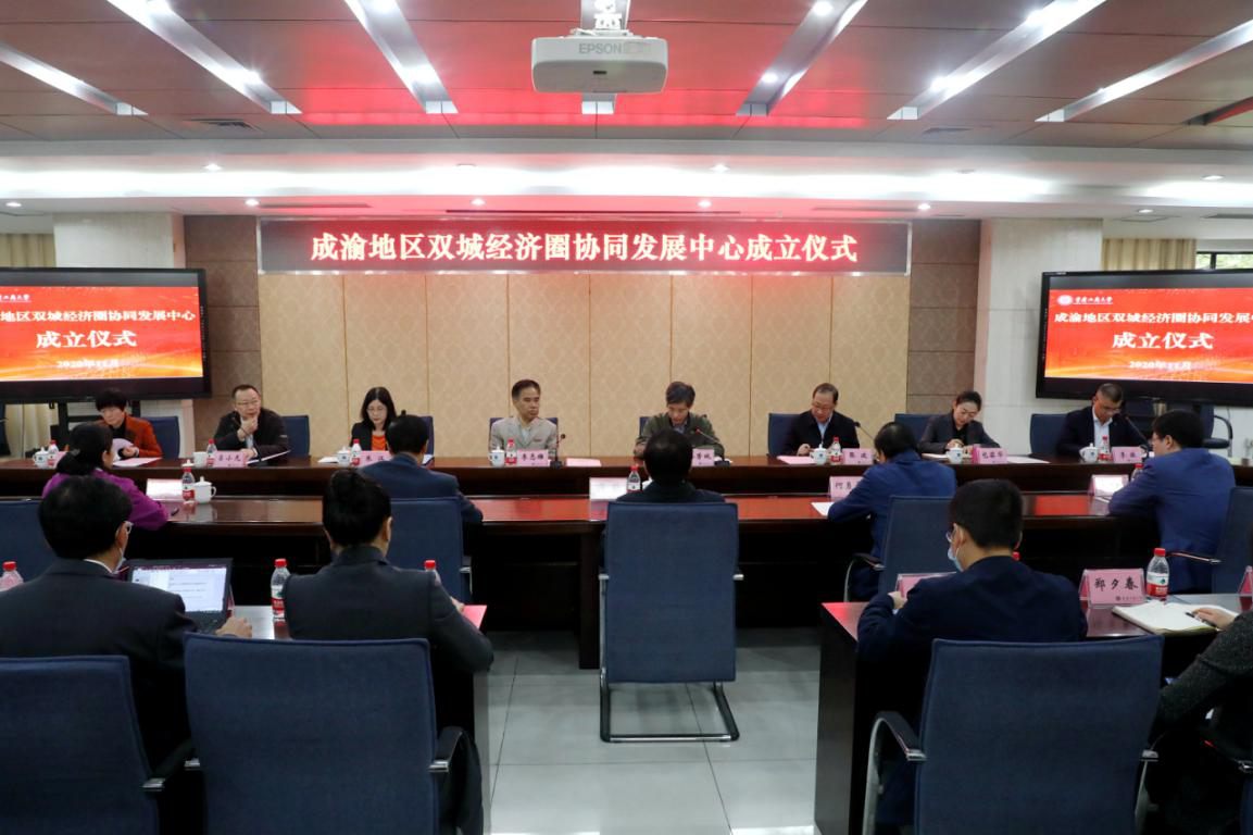为更好地助推成渝地区双城经济圈建设,11月18日上午,成渝地区双城经济圈协同发展中心成立仪式在beat365厚德楼2017会议室成功举行。重庆市发展和改革委员会总经济师朱江,重庆市政府发展研究中心副主任、重庆市社科院副院长张波,重庆市综合经济研究院院长、市政协经济委员会副主任易小光,南岸区副区长包茹华,相关校领导,各职能部门负责人、学院院长及师生代表参加本次会议。会议由副校长李敬主持。