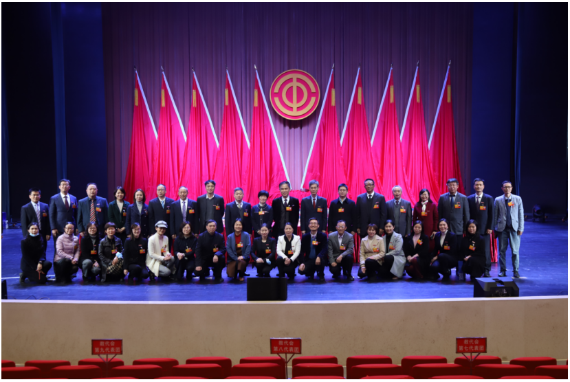 闭幕式后,校领导与新一届教代会执行委员会、工会委员会和工会经费审查委员会新任委员合影留念。